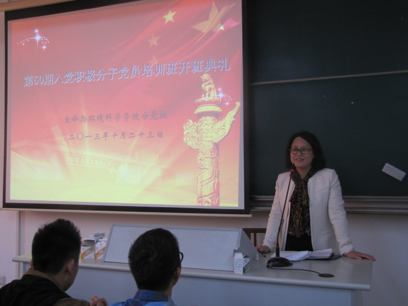 为使广大学生入党积极分子了解无产阶级思想,明确共产主义纲领,把握先进文化的前进方向, 10月23日13:30,生命与环境科学院分党校在B楼107室隆重举行第五十期入党积极分子党课培训开班典礼,并在102室开展党课培训第一讲。成人小说 党委书记周春儿出席本次开班典礼,党建组织委员倪雅主持开班典礼。
