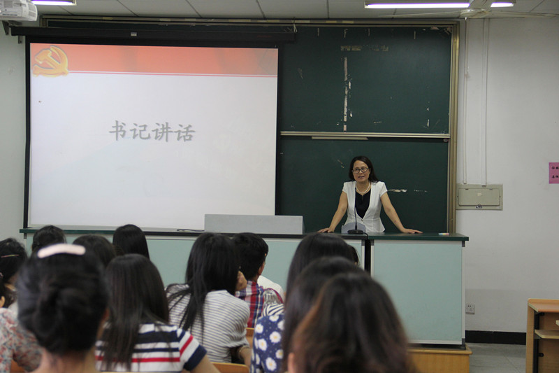 宣誓仪式在嘹亮的《国际歌》中拉开帷幕。随后金书记带领新发展的1名党员教师、13名学生党员和部分老党员代表进行了庄严的入党宣誓:“我志愿加入中国共产党,拥护党的纲领。。。。。。”再次,新党员代表王樱结合自己的学习、工作实际发表了讲话,向其他党员们介绍了自己如何向中国共产党靠近,如何在入党的道路上努力拼搏,并代表全体新党员表明决心:在今后的学习生活中会更加严格要求自己,时刻提醒自己是一名中国共产党员,时刻为同学服务,坚持做到不怕累、不怕可;而后,孙扬同学作为老党员代表发表讲话,讲述了他作为党员的一些心得收获,并给予了新党员一些建议,如在文明寝室建设过程中,作为一名共产党员就应比别的同学多出一份力,使寝室保持文明整洁;鼓励党员多与老师交流,做好同学与老师间的桥梁工作。最后,院党委书记周春儿发表了讲话,她结合历史与当下,要求全体党员按照入党誓词规范自己的言论和行动,把入党誓词化为自己的自觉行动,努力去实践自己对党的决心,履行自己对党和人民所承诺的庄严政治责任。同时对所有党员提出三点希望:端正入党动机,不断加强党性修养,自觉接受党性锻炼;做一个对社会有用的人,全心全意为他人、为社会服务;在工作学习中发挥党员的先锋模范作用,为学校、学院创一流添砖加瓦。