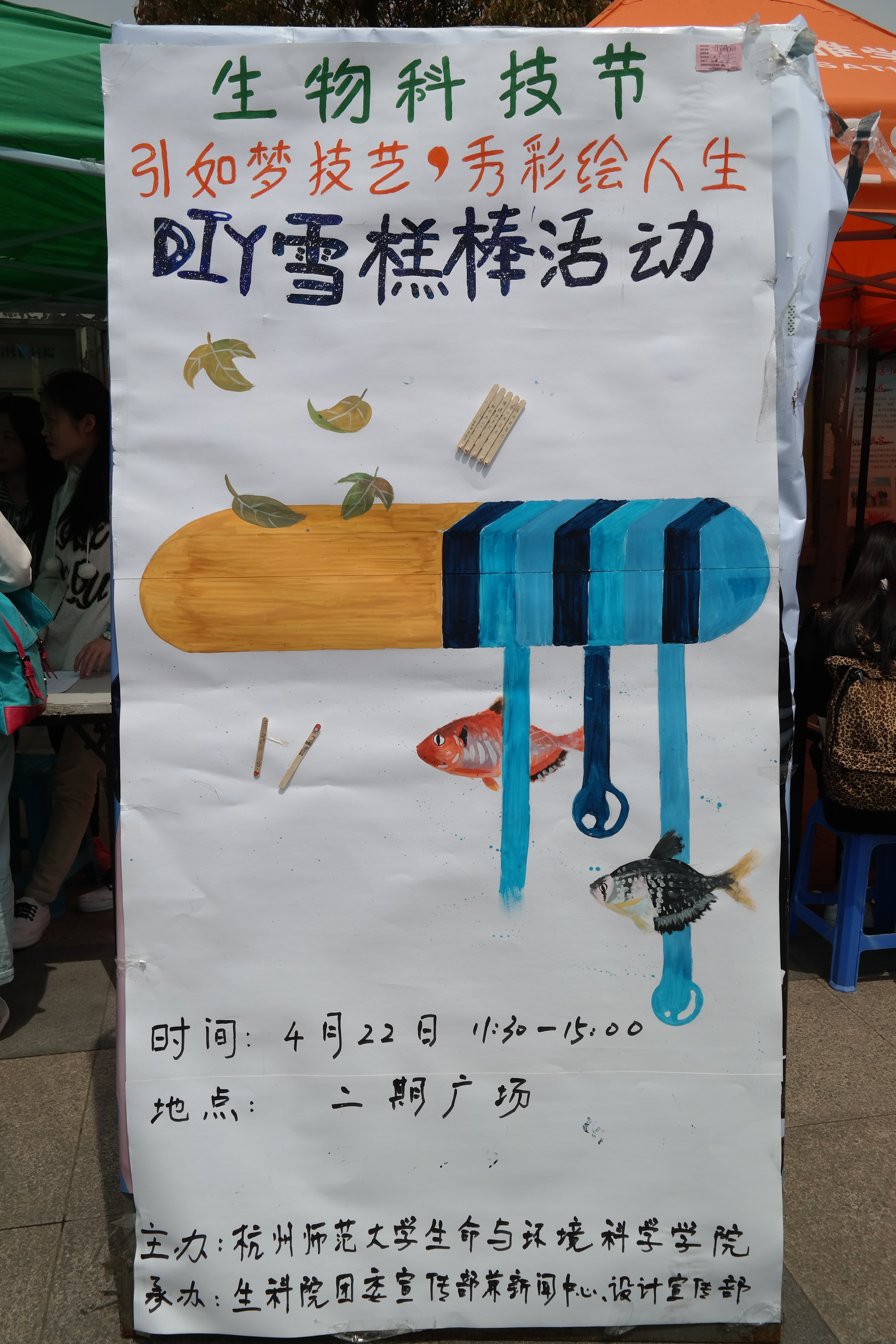 4月22日中午11点30分,在成人小说 下沙校区二期食堂广场举办了由成人小说 团学联团委宣传部兼成人小说_成人小说官方最新未删减版入口和设计宣传部联合组织的生物科技节之“引如梦技艺,秀彩绘人生”雪糕棒DIY制作活动。活动当日,场地帐篷前人潮涌动,人气爆棚。