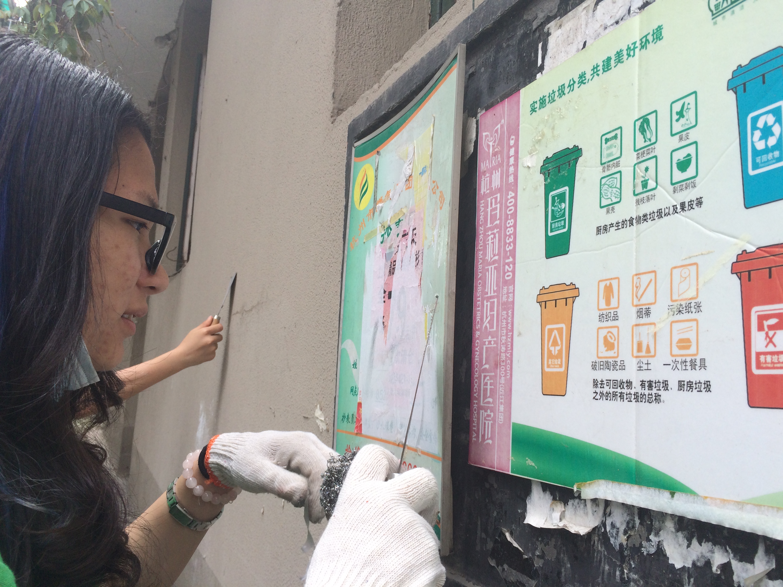在历时3个小时的活动中,志愿者们都干劲十足。推车的,除草的,种植的,大家进行的有条不紊。而在进行牛皮癣清除的志愿者们则手拿刷子与钢丝球,在小区里的单元楼里不停地清除着小广告。虽然并不轻松,但每个人都干劲十足,不多时便成果斐然。期间也有不少路过的小区居民上前询问,并且表达了他们的谢意。甚至有两个小朋友还加入了志愿者的队伍,一起挖坑种草,美化绿地,甚至还与志愿者们分享他们的环保小知识。