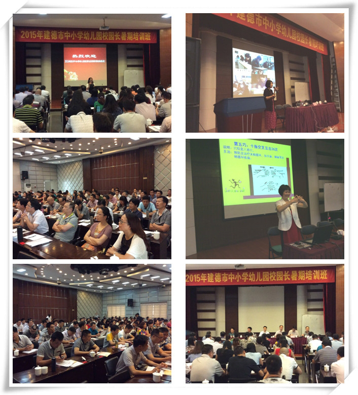 2015年8月11日上午,成人小说 党委书记周春儿组班的2015年建德市中小学、幼儿园校(园)长暑期培训班在杭州采荷大酒店二楼多媒体报告厅召开,为期2天的培训班按照对方要求进行菜单式的设计并实施完成。图为:学院党委书记在开班典礼上的讲话、专家主题讲座和建德市教育局会议活动。
