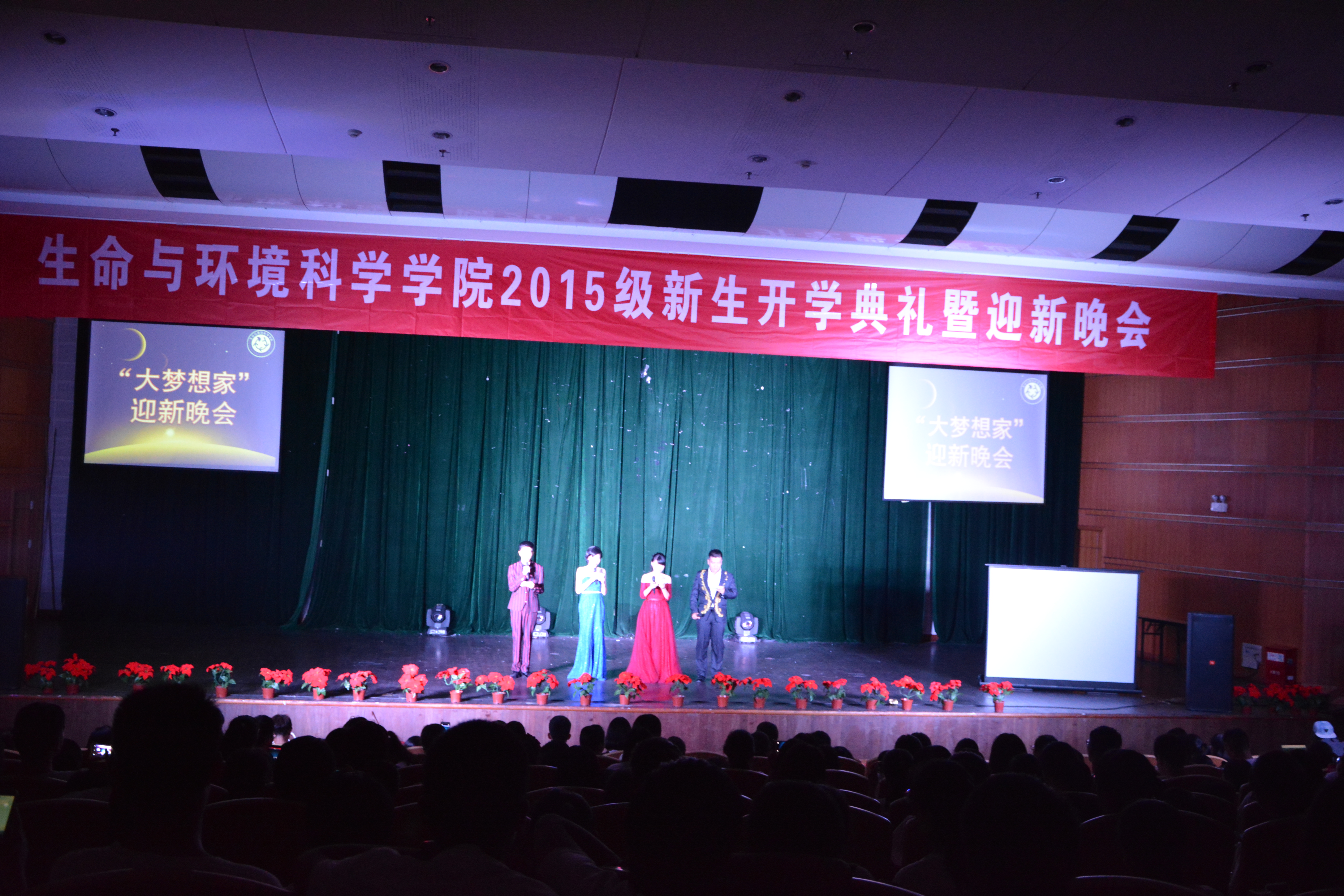 伴随着现场同学们响亮的掌声,晚会在开场热舞《say my name》中正式开始。本次晚会是一场视觉与听觉上的盛宴,内容丰富精彩,形式多种多样。歌舞、相声、环保时装秀等精彩节目让观众们欢呼不止,掌声雷动。15级新生的歌曲串烧似天籁之音,激情洋溢;舞蹈《礼仪之邦》深刻展现了汉代文明的独特韵味;五彩缤纷的环保时装秀让同学们止不住拍手叫好,将气氛推向了高潮;趣味横生的相声表演《满腹经纶》引发了台下的哄堂大笑;此外,晚会中还穿插了文明寝室的颁奖仪式,以表彰并且鼓励同学们越做越好。最后在团学联的《爱》中,本次晚会圆满落下帷幕。