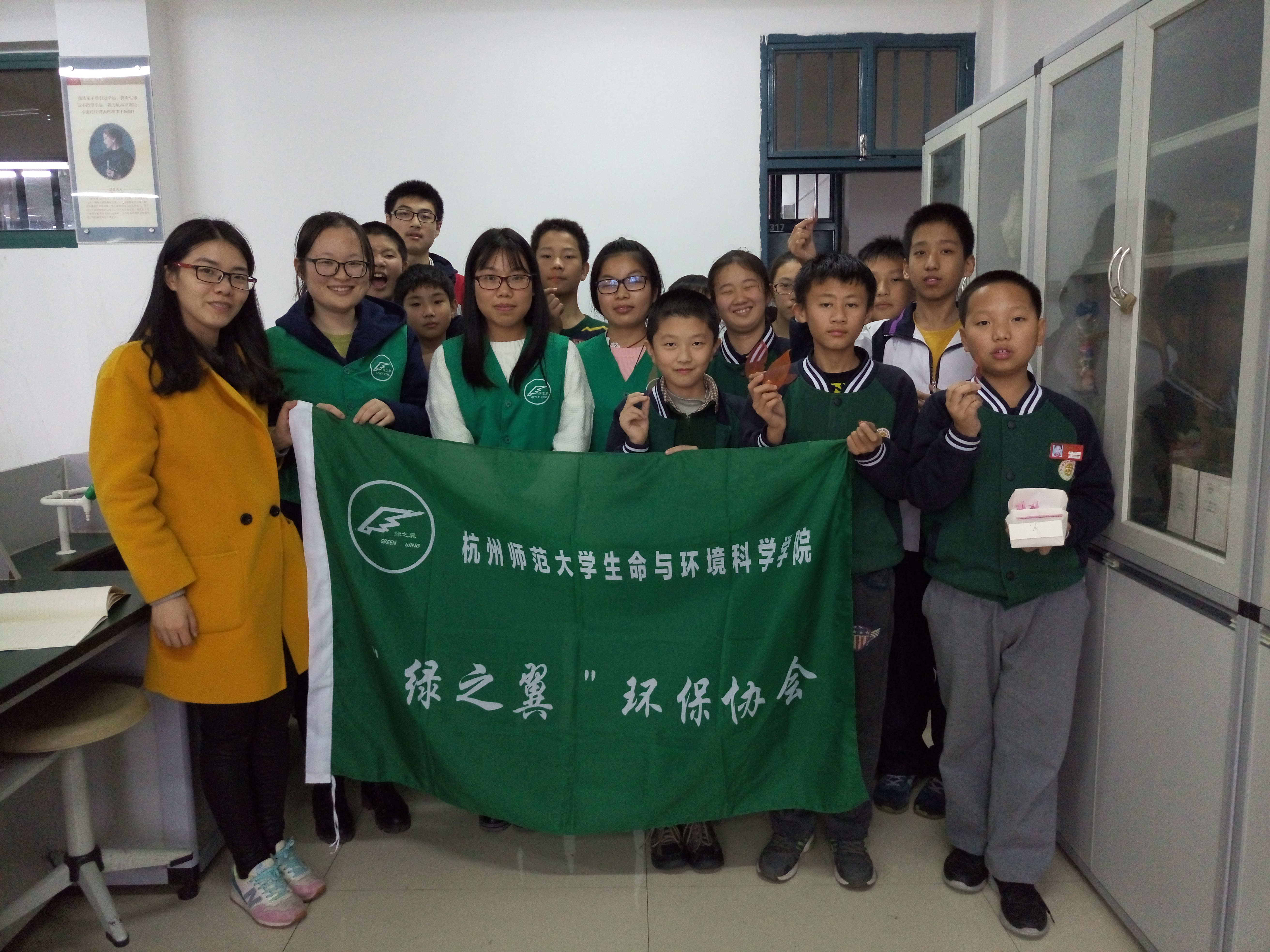 2015年11月20日,成人小说 "绿之翼"环保协会四位成员前往杭州市拱宸中学,为拱宸中学环保社团的同学们带来了一节别开生面的环保手工课。