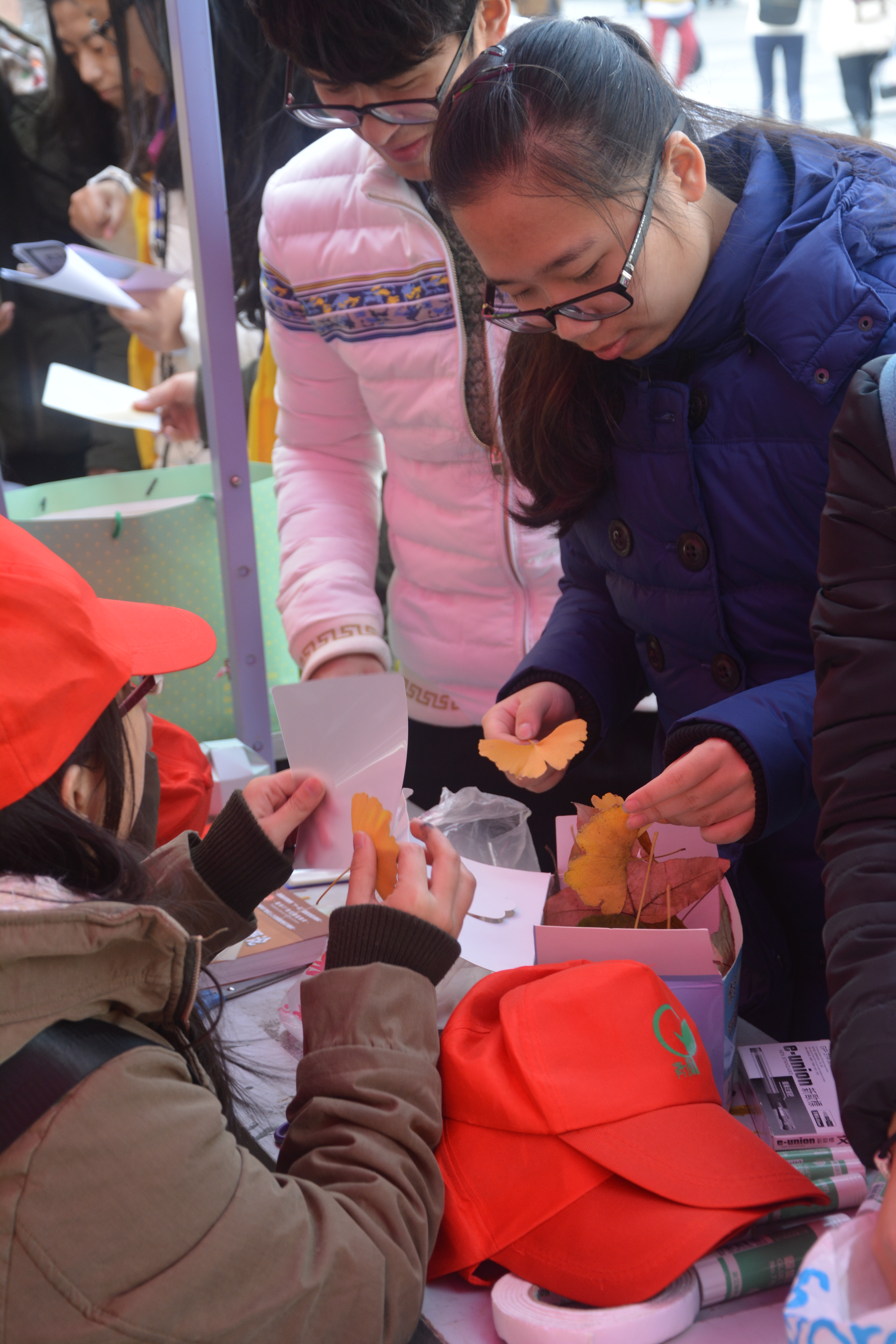 12月16日11点30分,由成人小说 B.D服务社以及理学院青源环保协会联合举办的“落叶传情,情满杭城”——落叶书签活动在二期广场前顺利开展。