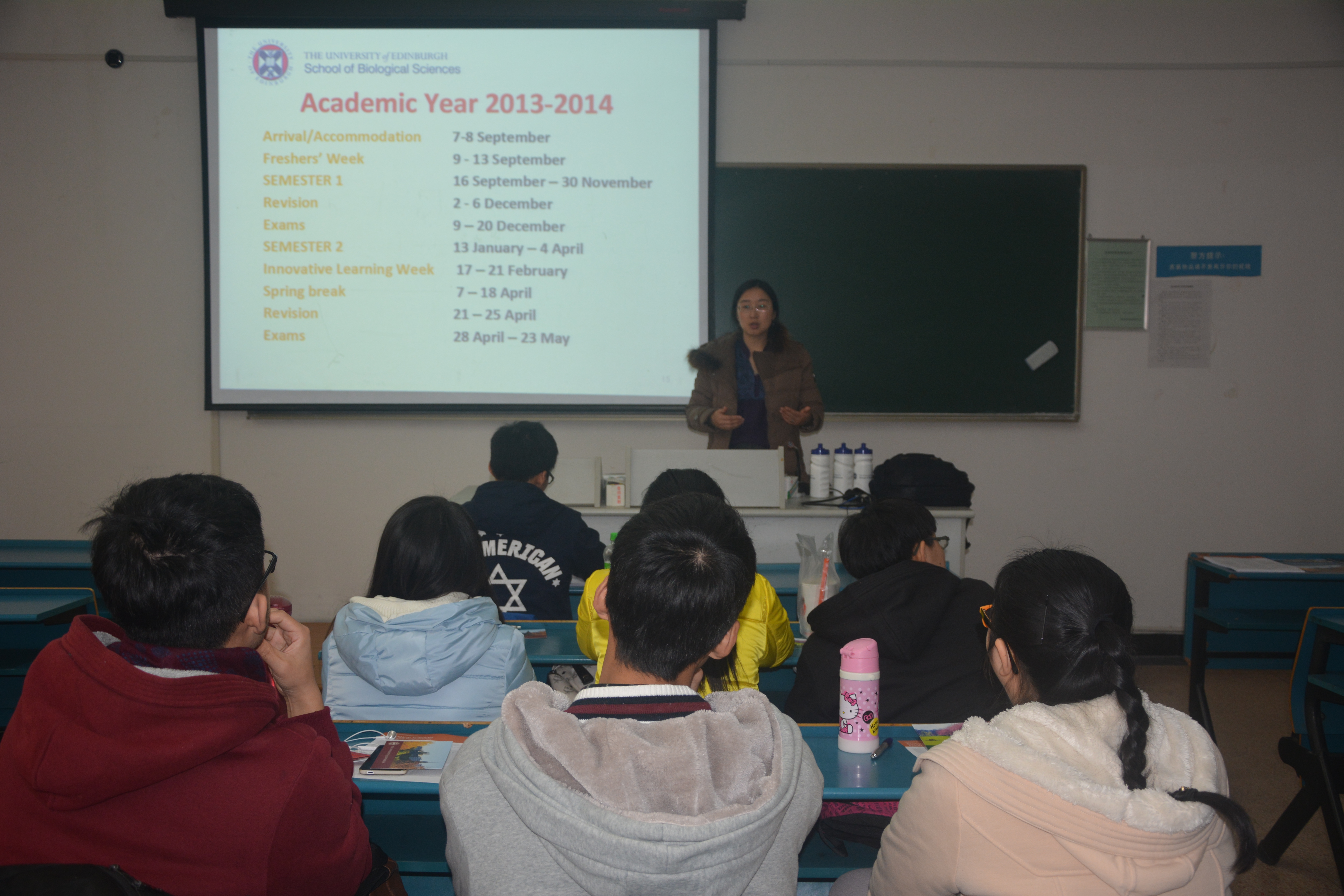 2015年12月23日下午一点,爱丁堡大学校园宣讲会在教学楼A 307顺利举行。本次宣讲会由爱丁堡大学生物科学学院的教育技术主管胡玉华老师主讲。