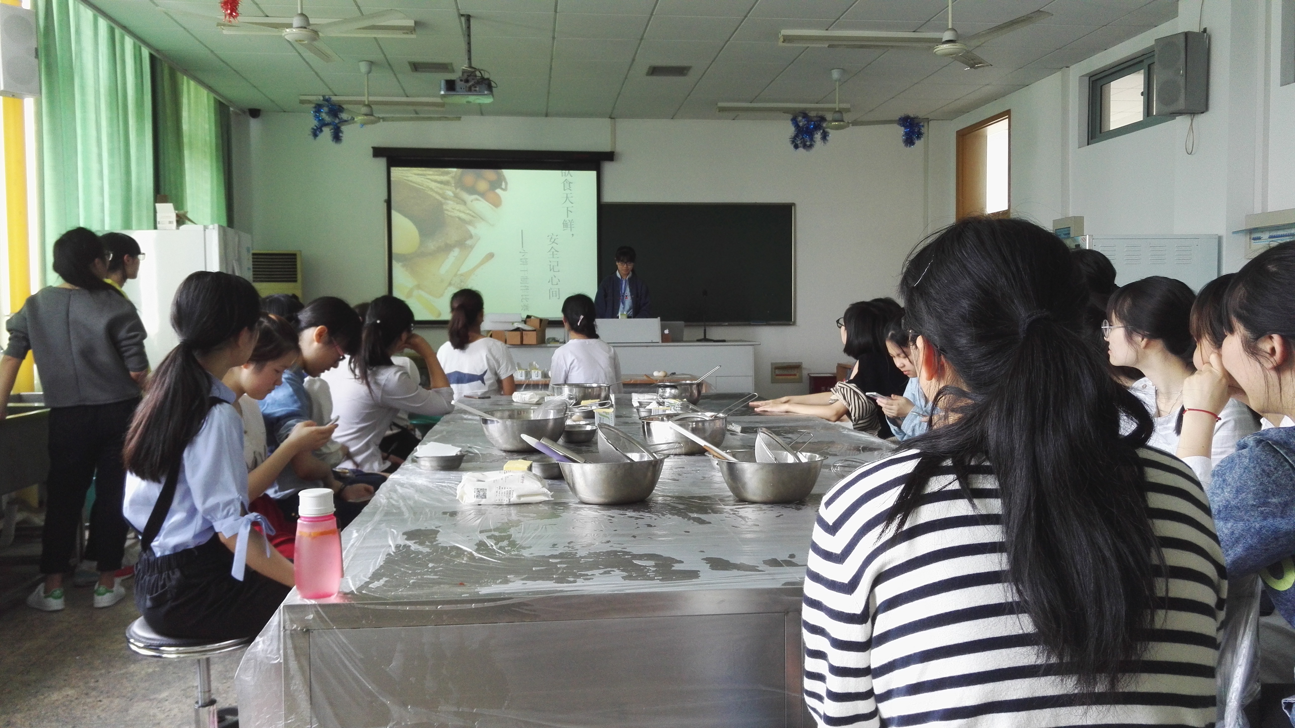 虽然同学们的参与热情高涨,但食品安全实验室容量有限,此次活动的参与者是随机选出的幸运儿。同学们都准时到达了实验室,也有感兴趣的同学前来观摩。参与同学在听过B.D.服务社干事的详细讲解后纷纷兴致盎然地开始制作属于自己的小饼干。融黄油、打鸡蛋、筛面粉……同学们忙得不亦乐乎,意愿在比赛中拔得头筹。