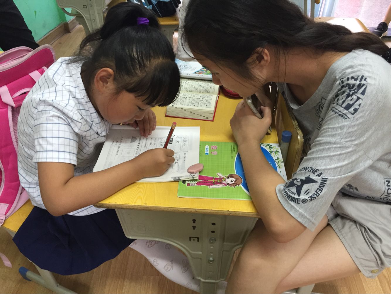 在前几天的熟悉下,小分队成员已经和孩子们打成了一片。来到辅导教室,小分队成员们也融入到了浓浓的学习氛围中,毕竟能够作为一名小老师对小朋友们进行教导,对小分队来说是一次难得的机会。做惯了大学的作业,一下子回到小学水平让小分队成员们有些措手不及啊。面对较为“原始”的小学数学,小分队的成员各自在面对小朋友时都有不一样的反应。有的显得十分擅长,对待小朋友的疑问能过简单明了的解答,并予以解释。有的则显得拘谨,但在小朋友天真的笑容下,也逐渐放开了。期间还出现了一些作业题成员们一时难以想出来的状况,看来作为老师,小分队还有很长的一段路要走啊。小分队认识了调皮得不行的男孩子,也见到了乖巧文静的女孩子。有位小男孩过于淘气,小分队成员一时没有办法解决,看着这位小调皮影响着别人,小分队的男同志们只好展现出严肃的一面对其进行“打压”,让小男孩回到了座位上学习。