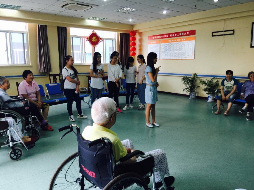 等爷爷奶奶们围坐在仁济老年中心的一楼大厅后,仁济老年中心的负责人向老人们介绍了我们的基本情况。我们8人也分别向爷爷奶奶们进行了自我介绍,期间来自广东讲粤语的林楚霞同学让爷爷奶奶们猜她来自哪里,逗得爷爷奶奶们十分开心。在自我介绍完后,我们也分散开和爷爷奶奶们聊天,畅谈他们年轻时有趣的故事。
