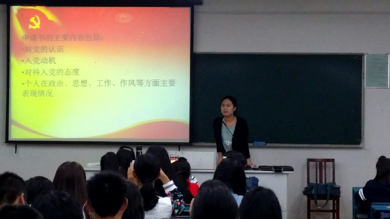 2016年9月29日星期四,成人小说 本科生第二党支部对大一新生班级生物技术161和生物技术162班开展了入党宣传教育活动。支部组织委员张荃负责本次入党宣讲活动。