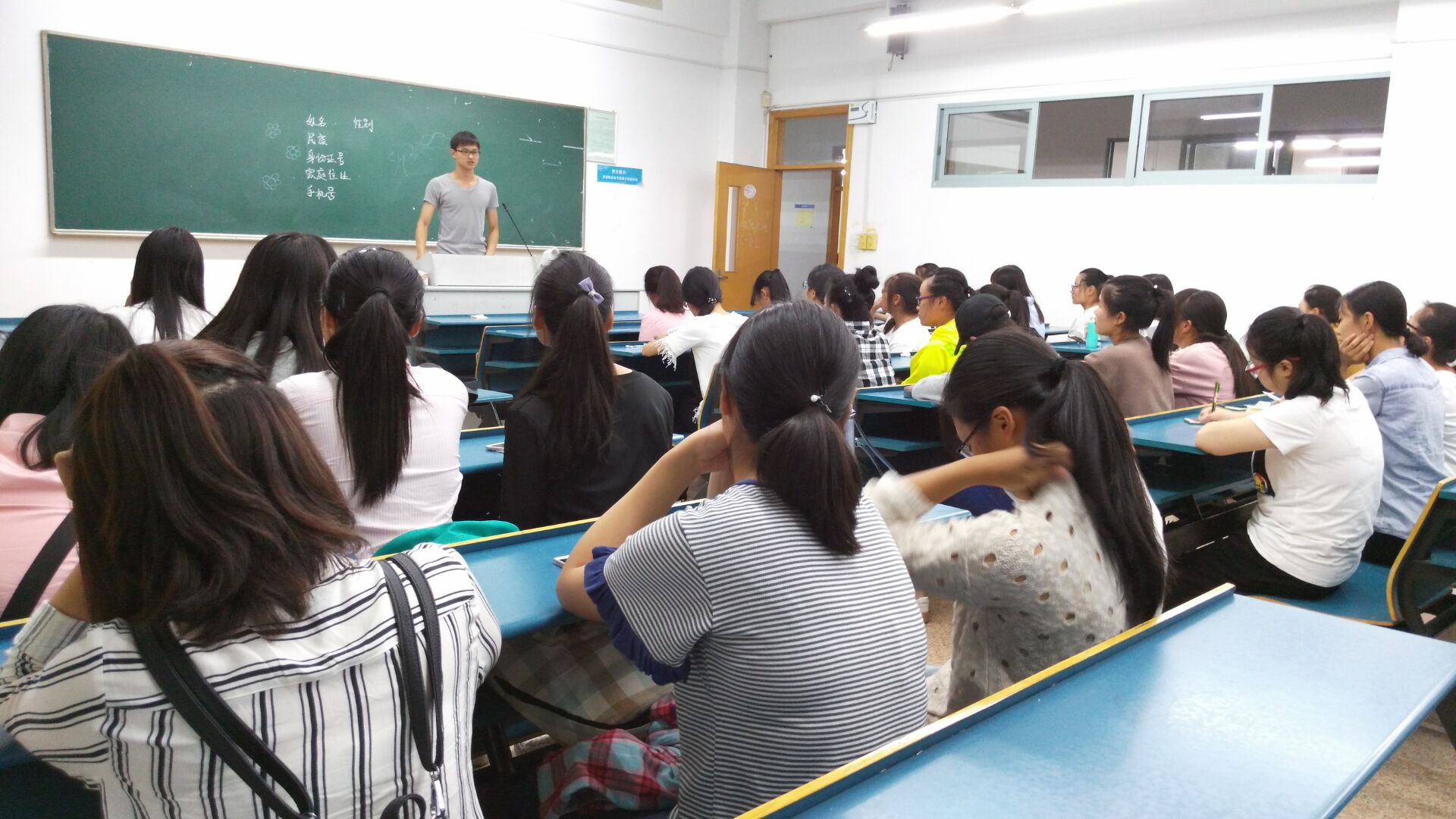 最后2016级新生表示一定会端正态度,努力学习,从各个方面锻炼自己,按照党员的标准严格要求自己的行为,通过自己的不断努力争取早日向党组织靠拢。
