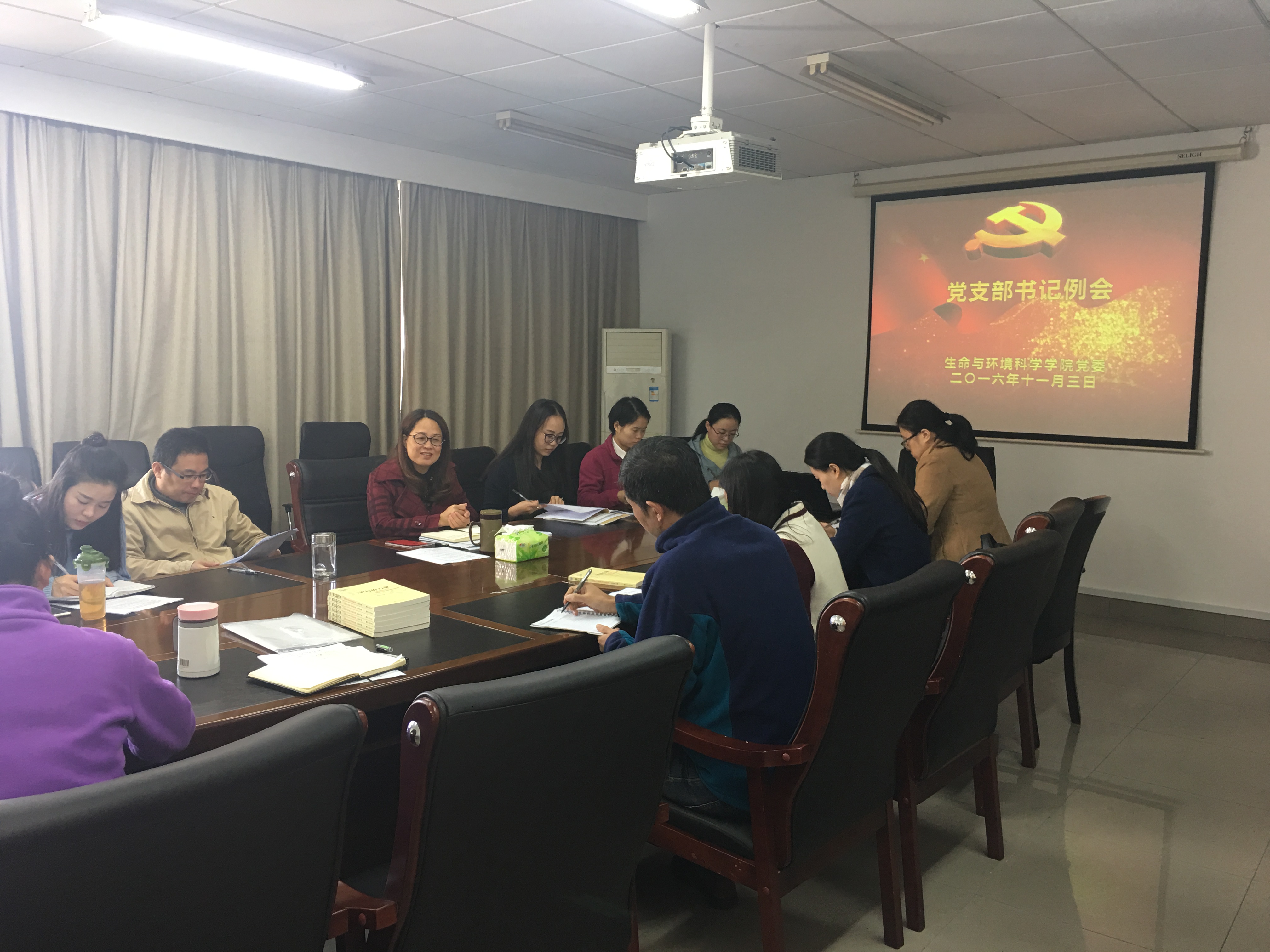 此次例会由院党委书记周春儿主持,周书记首先向全体党支部书记简要说明会议内容,例会内容分为:11月工作部署、进一步开展“两学一做”工作、讨论并研究“团员推优、发展党员”等相关标准,以进一步完善学院党建等发展规章制度,进一步规范党员发展。