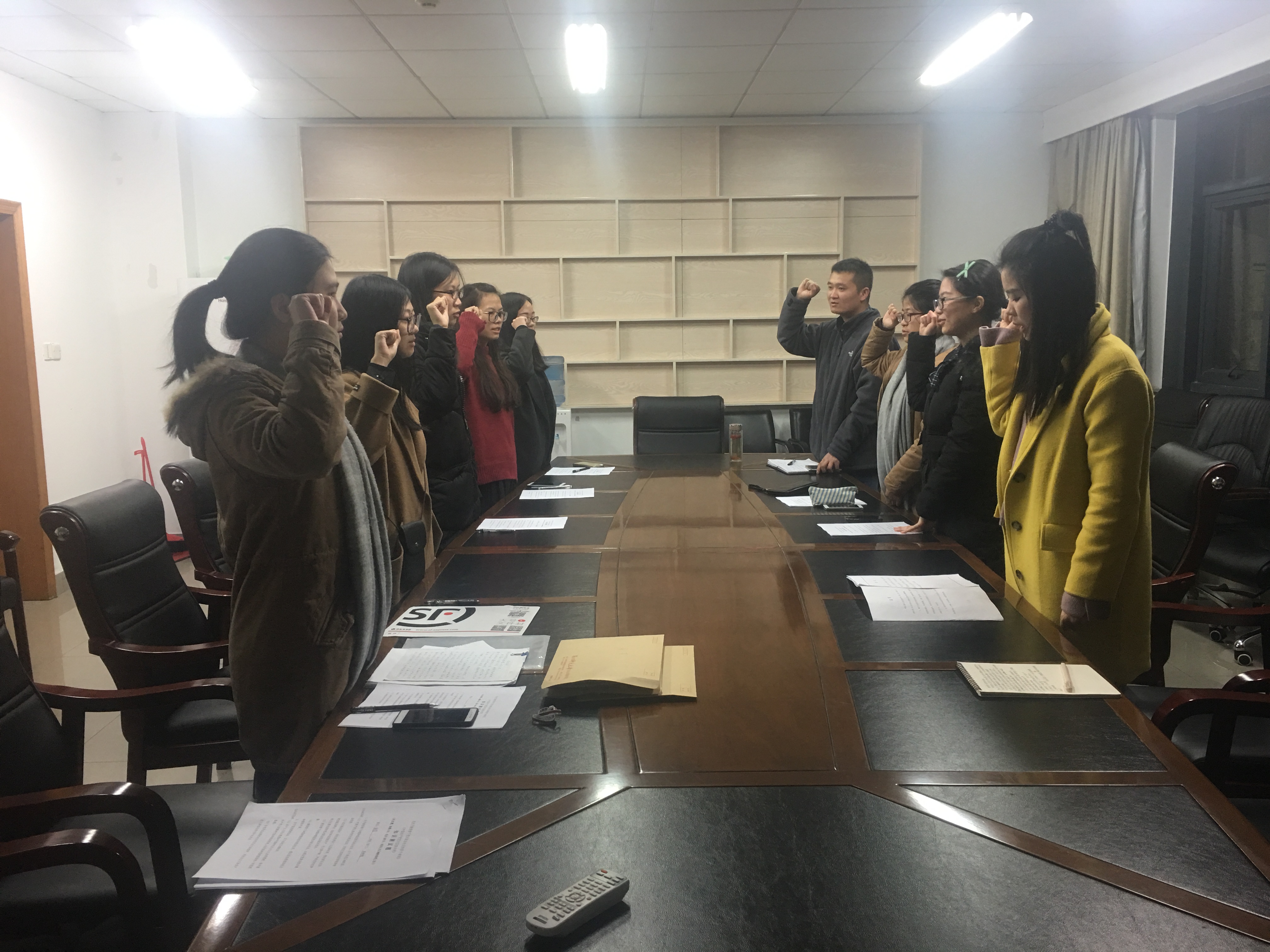 结束上述流程后,第二党支部书记陈好老师向新加入党组织的同学提出了要以党员标准严格要求自己的号召,并带领所有到场的支部成员宣读了入党宣言,再次明确成为中国共产党员的要求。