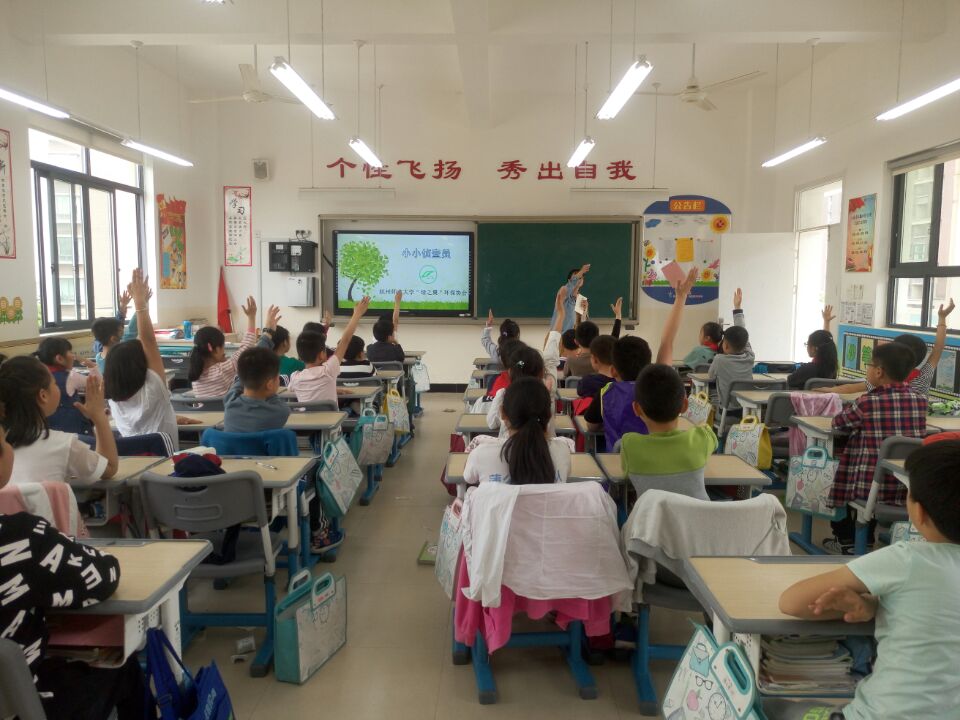 整节课除了讲师的讲解,学生们也融入其中。讲师的提问将课堂氛围带到极点,利用五水共治时期不良现象图片,比如在河边洗衣服,工业直排污水进河、往河里扔垃圾等等,考察学生们的观察能力,同时也让学生们知晓不文明现象所带来的对环境的严重伤害。在课程最后,呼吁学生们从生活小事做起,参与五水共治。