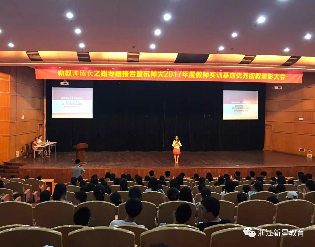 5月31日16时整,成人小说 的钧儒厅座无虚席,来自杭师大材料与化学化工学院、理学院、成人小说 的500多位大一、大二师范生汇聚于此,屏气凝神地等待着一场盛会的召开——新教师成长之路分享会暨杭师大2017年度教师实训基地助教表彰大会。