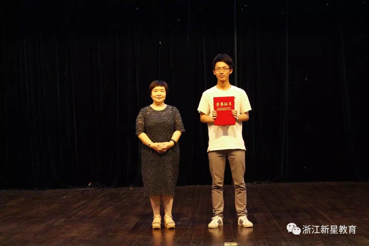 第四组是来自理学院的特殊贡献奖获得者黄子龙,绍兴新星教育培训学校李红蓉校长为其颁奖。