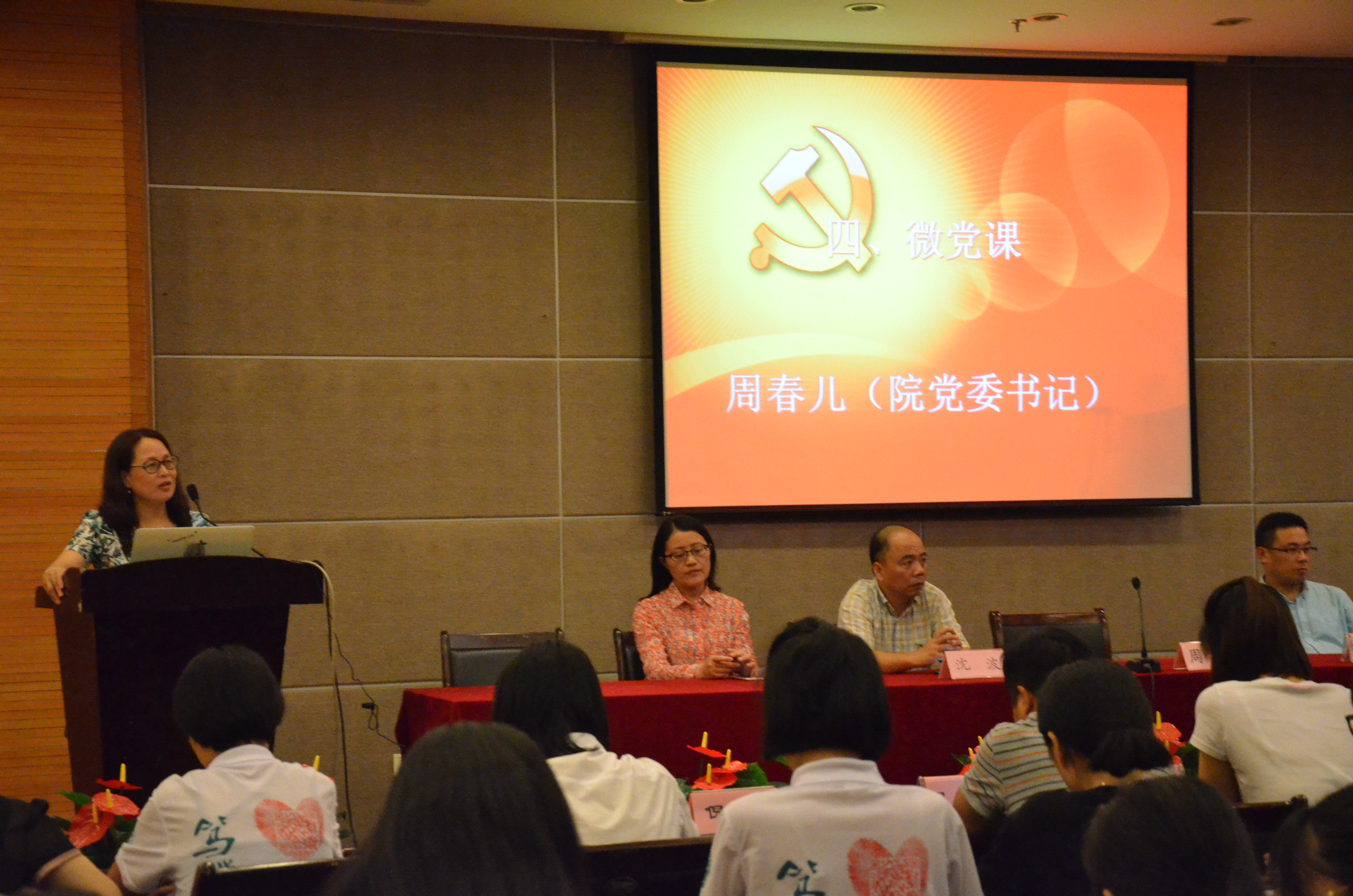 随后,党委书记周春儿为毕业生党员们上了在杭师大的最后一堂党课。她简要的讲述以下几点:首先,她向毕业生们表示祝贺,当代的大学生,在座的所有人,有很好的硬件和软件设施学习环境,相比从前大家是幸运的,可不管在当时她身处的艰苦年代,还是现在的幸福年代,大学生活仍然是人生中最值得回忆的时代。同时,她代表成人小说 党委向大家提出了几点要求。第一,希望在座的各位,不忘初心,坚定理想意识,增强党员意识,永远记得自己是一名党员,永远记得自己当初入党时许下的誓言,不要被物质世界的诱惑,冲淡了自己的理想信念。第二希望大家坚持学习,终身学习,不断提高综合素质,保持先进性。身为党员,是先进性的代表。在未来的社会,大家会面对非常多的竞争,而面对竞争的时候,希望在座的各位,可以始终保持一个积极的心态、良好的态度,相比能力,有时态度反而更重要,往往态度才是取胜的关键。而对于能力,大学阶段所习得的知识是远远不够的,所以也需要大家不断地去学习,不断的去完善自我。再者是,对待工作、对待事物的情感也是未来党员生活中不可或缺的重要部分,你们对于父母的情感,对于朋友的情感,对于工作的情感,决定了你是快乐的工作还是苦闷的工作,这将会影响你在工作、生活中取得什么样的成果。周春儿书记还希望大家在未来人生的道路上做一名清正廉洁、光明磊落的党员,心中永远装着群众,做到全心全意为人民服务,起好模范带头作用,永远记得自己是一名光荣的共产党员。最后,倪雅老师对党组织转接的注意事项进行了说明。