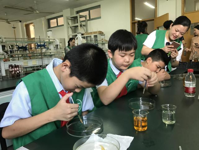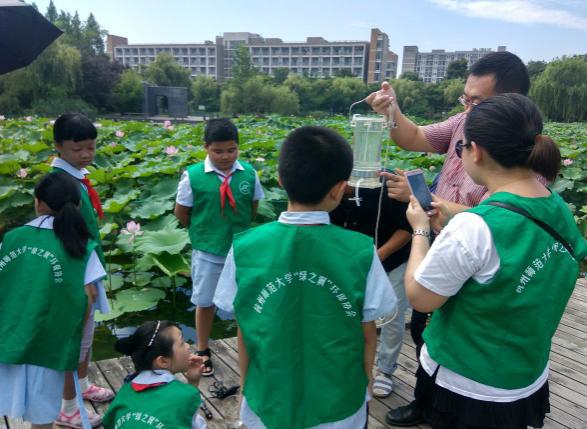 2017年7月12日上午九点,成人小说 ”绿之翼”环保协会携手杭师大生命科学学院研究生会,与杭州市青蓝小学追梦小队的同学们一起,在成人小说 踏上了他们神奇的水之旅。活动地点为5号实验楼化学实验室122、显微镜实验室318、动物标本馆以及食品工艺室423。