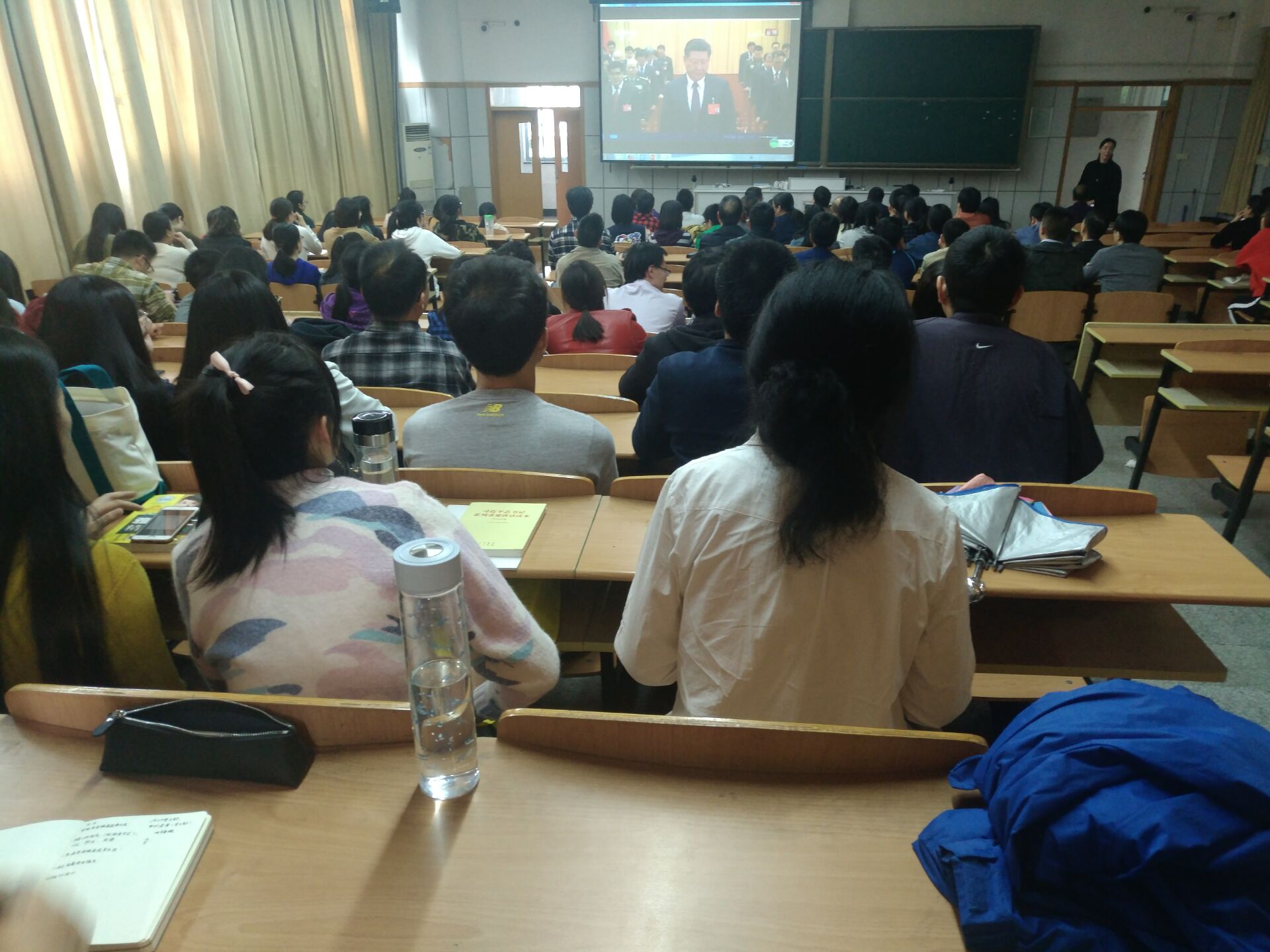 10月18日上午全体教职工和部分学生党员在A218观看了十九大实况直播。观看后院党委书记张杭君表示习近平总书记的报告鼓舞人心,催人奋进。学院干部职工要同心同力,紧扣立德树人的根本任务,加快一流学院和一流学科建设,提升学生的培养质量和精准度。下一步学院会认真抓好十九大精神的学习贯彻工作,进一步推进思政工作,并积极组织专家教授开展对十九大精神的宣讲,把十九大的精神传递给全院师生。院学生会副主席,来自生科师范专业的许敏赟同学表示习近平总书记在教育方面提到要优先发展教育事业,办好人民满意的教育,推进教育公平。作为师范生,要练出扎实的师范生技能,养成良好的师德师风,为走上教师岗位打下良好的基础。