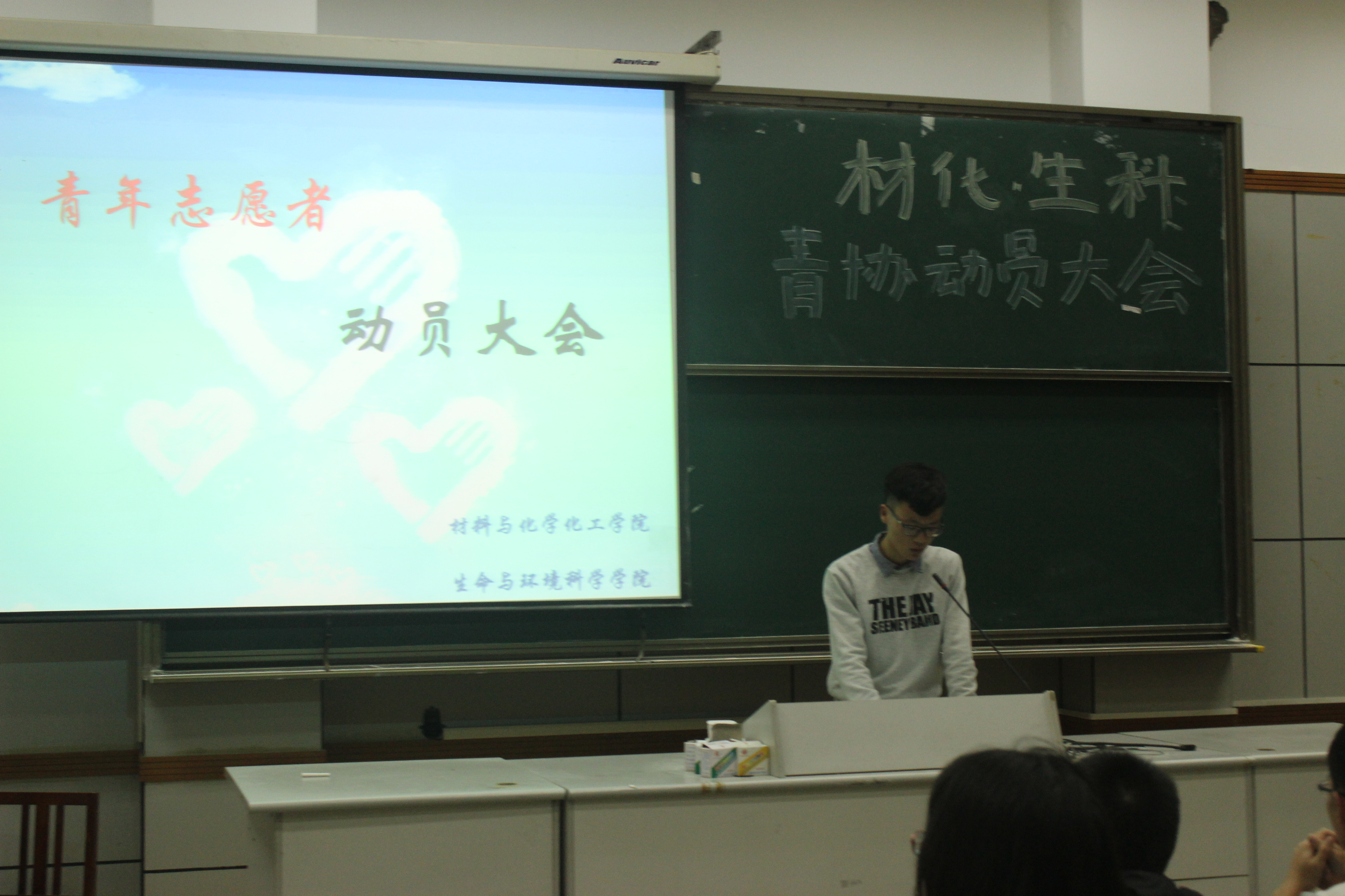 2017年10月27日晚七时,成人小说 及材料与化学化工学院联合主办了青年志愿者动员大会。此次大会旨在加深会员对青协的了解与认识,让更多志愿者共同投身青协志愿服务活动。出席此次活动有材料与化学化工学院社团联合会主席张可,成人小说 青年志愿者协会会长吕棋聪,材料与化学化工学院青年志愿者协会部长王睿。