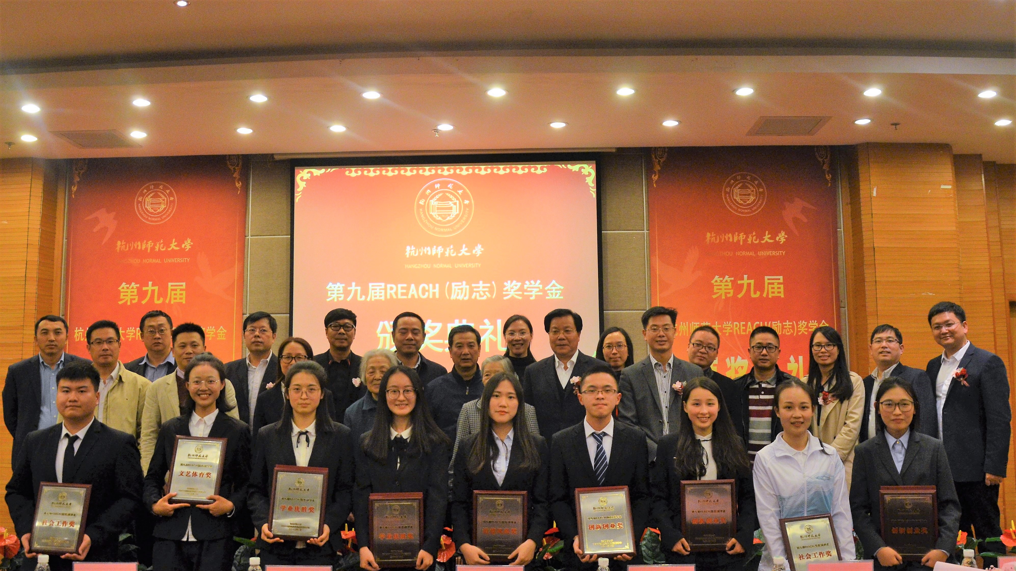2017年11月4日晚六点半,成人小说 于行政楼叙伦厅举办了第九届REACH(励志)奖学金颁奖典礼。本次颁奖典礼邀请了成人小说 校友、浙江省委教育工委副书记、省教育厅副厅长鲍学军,成人小说 校友杭州亚泰实业有限公司董事长方剑成,成人小说 党委委员、副校长方亮、党委学生工作部部长何军,校友总会秘书处秘书长、教育基金会秘书处秘书长蔡云飞,成人小说 老教师代表曾祥幼、危文智、曹明富,成人小说 杭州国际服务工程学院、党委书记周春儿,外国语学院党委副书记金岳祥,成人小说 部分98级校友,到场的还有成人小说 及兄弟学院的领导。
