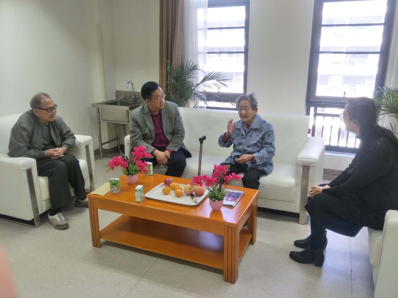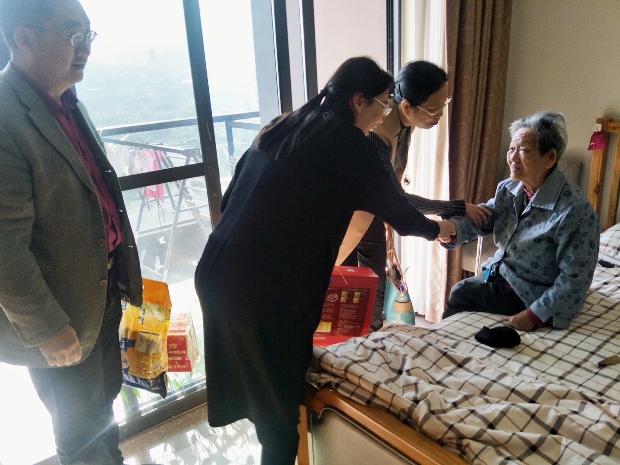 2017年11月2日,成人小说 党委书记张杭君、副书记余洁带领学院研究生第二党支部副书记郭洁娜与支部党员一起前往成人小说 退休党员罗紫娟老师住处拜访与慰问,这也是学院师生党支部结对退休党员的第一程。