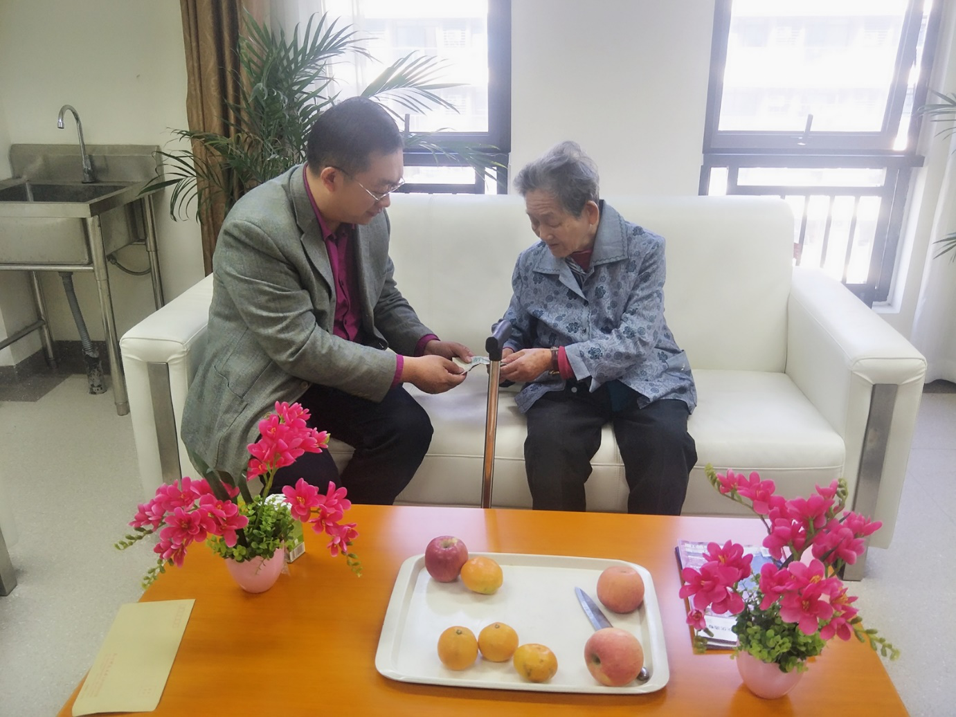 国是我的国,家是我的家。罗老师很坚定地说,我还活着,我就是党员。罗老师在十九大召开期间全程观看十九大开幕会直播,收听习近平总书记报告,并经常观看新闻联播。因为心系这个国家,因为热爱我们的党。讲到激动之处,罗老师也会站起身来,挥舞着不太灵活地胳臂,述说着党给现在的自己带来的幸福。作为国的一分子,无论何时都关心着自己的国家,把自己和国家联系在一起,为它的发展繁荣骄傲欣喜,也为自己生长在这片土地而感到幸福,这是一种怎样的家国情怀,没有国家的和平繁荣,哪有小家的和睦幸福。