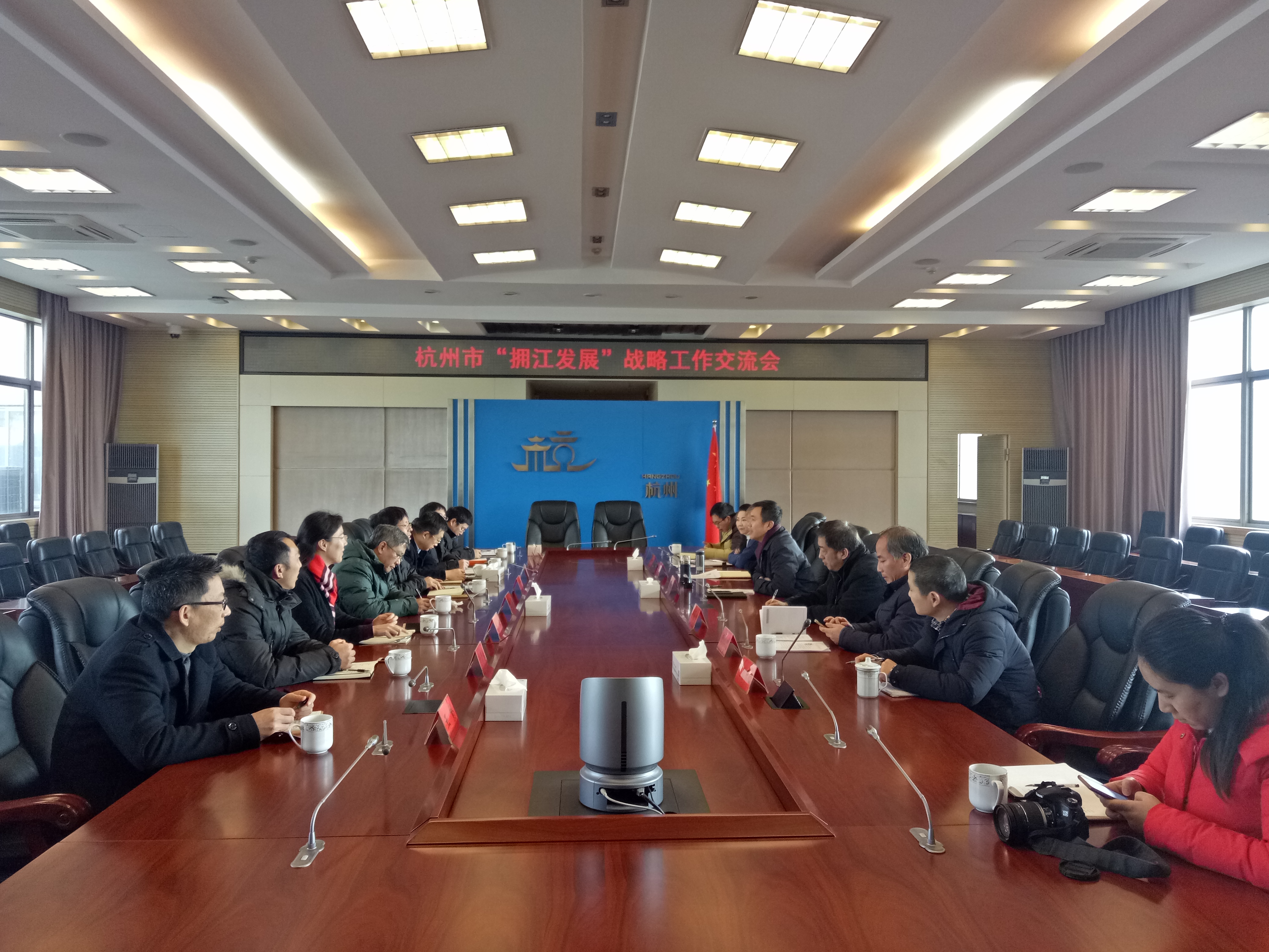 座谈会上,双方就钱塘江流域(大杭州段)生态系统构建、岸线修复与湿地生态修复、千岛湖引水工程、水环境保护等方面进行了深入沟通,对健康河道和健康生态标准交换了意见,对大江东湿地保护规划和三江口生态环境开发进行了交流等。最后双方都表示受益匪浅,下一步将在钱塘江经济带发展规划和生态系统保护与修复规划等方面进行进一步研究和对接,期望双方一起推进杭州市“拥江发展”战略工作,为共同建设美丽杭州贡献力量。