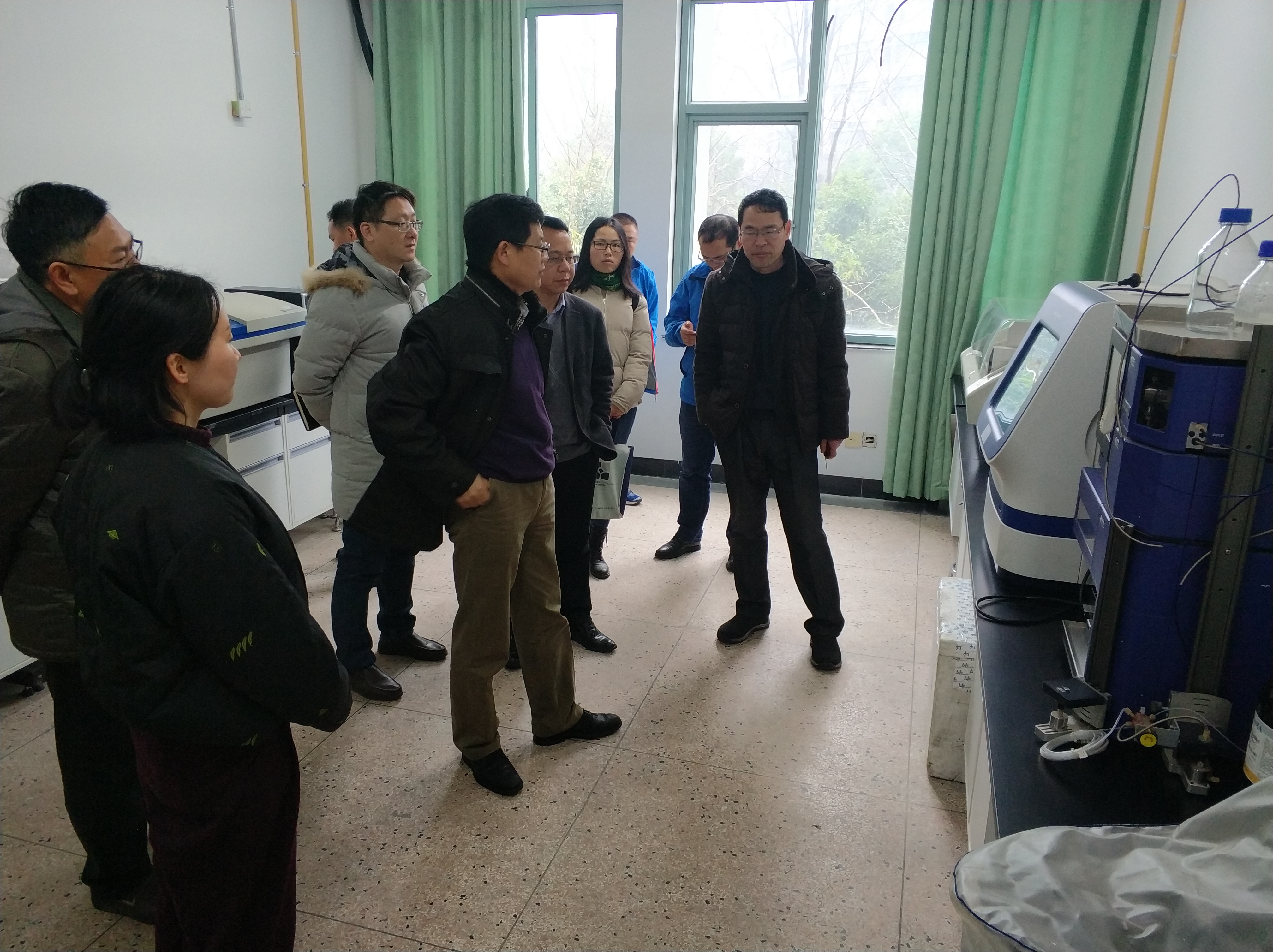 近日,杨磊副校长在实验建设管理处处长赵飞、副处长凌明路等人员的陪同下,到成人小说 检查实验室安全工作情况,成人小说 院长王慧中、副院长于彦春等人陪同检查。杨磊副校长一行检查了1号和5号实验楼危化品室、公共大型仪器平台和各课题组的科研实验室、教学实验室,并详细询问了大仪平台的使用效率,期间对实验技术员的一些诉求表示关心。