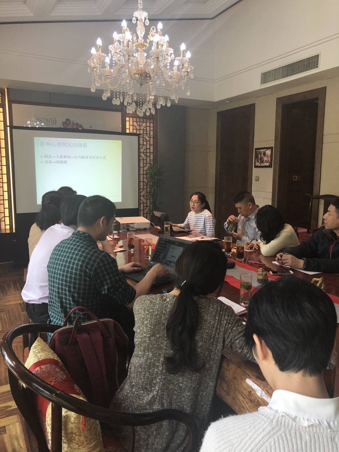 首先心理咨询中心孙小菲老师从学生心理健康问题出发,向各位班主任及辅导员讲授了常见心理问题评估,重点强调了自杀风险评估。心理健康与学生的成长和发展密切相连,孙老师在分享实际案例的同时与各班主任进行了深刻交流,让在座的班主任受益匪浅。