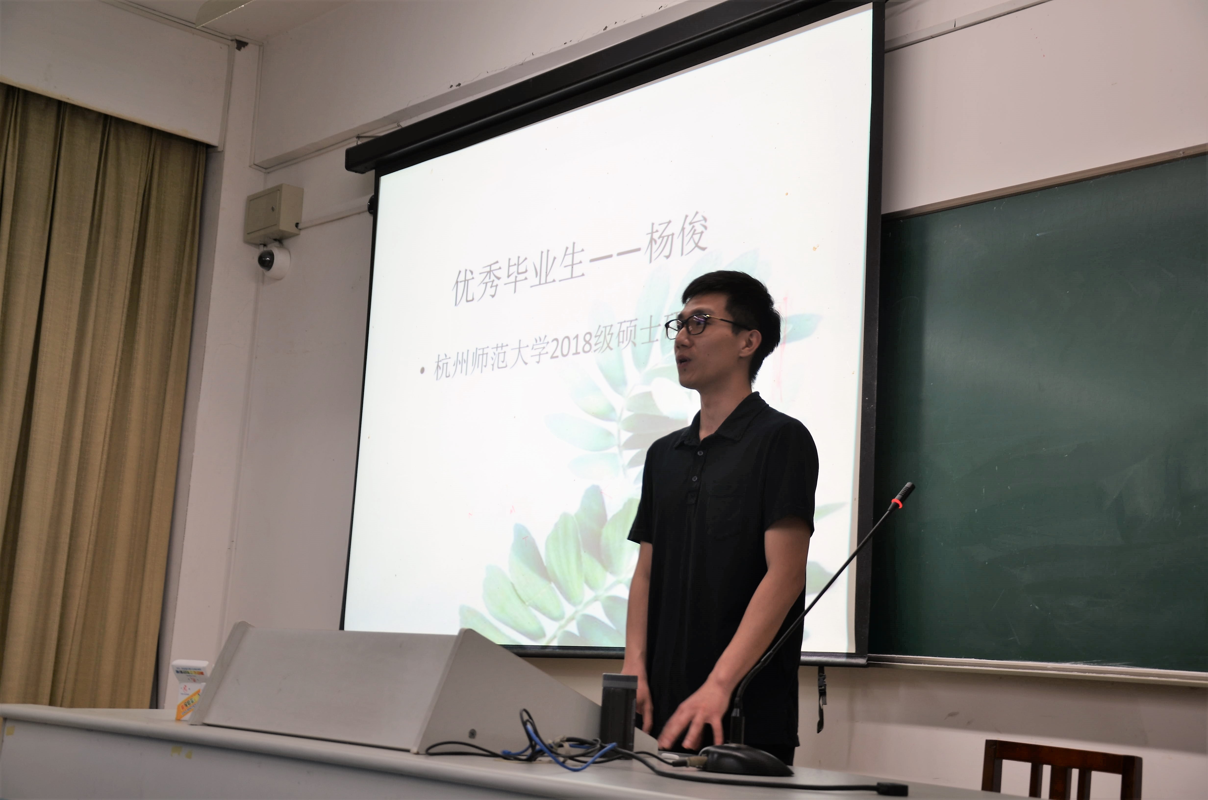 第二位向我们分享考研经验的是杨俊学长。杨俊学长是毕业工作两年半后,发现了自己的可替代性的问题后下定决心考研。他毅然决然地辞掉工作,重新进入学校,报考研班,向准备考研或已经考研成功的学长学姐取经,他指出想考研就一定要勤问勤学、重视专业课的成绩。同时他也从公司招聘角度为同学们分析了本科生与研究生的区别,鼓励同学们考研。