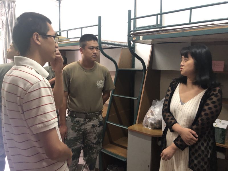 日前,成人小说 2018级本科新生军训正如火如荼的进行着,为深入了解新生军训情况,同时表达对军训教官的关切之情。2018年9月11日,成人小说 吕京京、岳龙华两位团委老师带领数名学生干部来到教官宿舍进行慰问。
