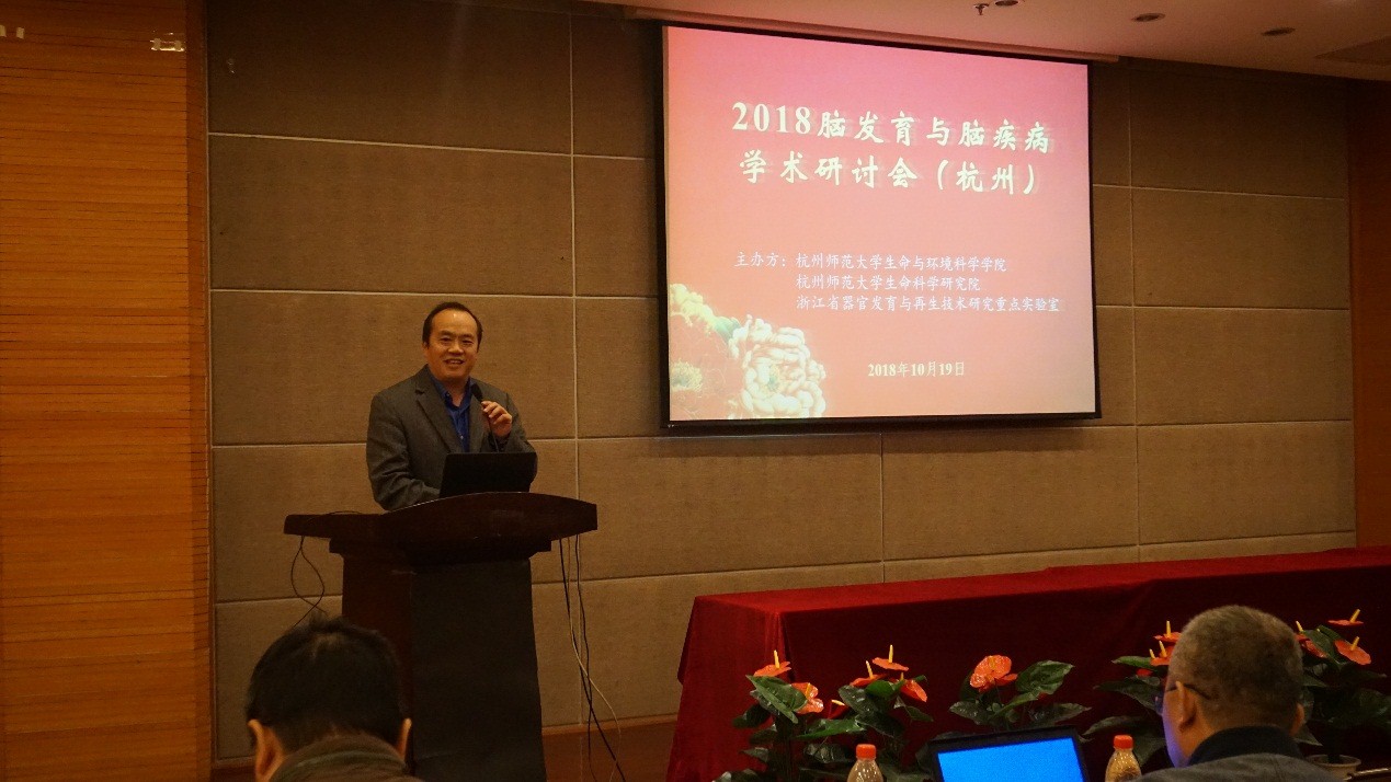 2018年10月19日上午,2018脑发育与脑疾病学术研讨会(杭州)(2018 Hangzhou Symposium on Brain Development and Disease)在我校下沙校区行政楼叙伦厅举行。生命科学研究院院长邱猛生教授主持会议。