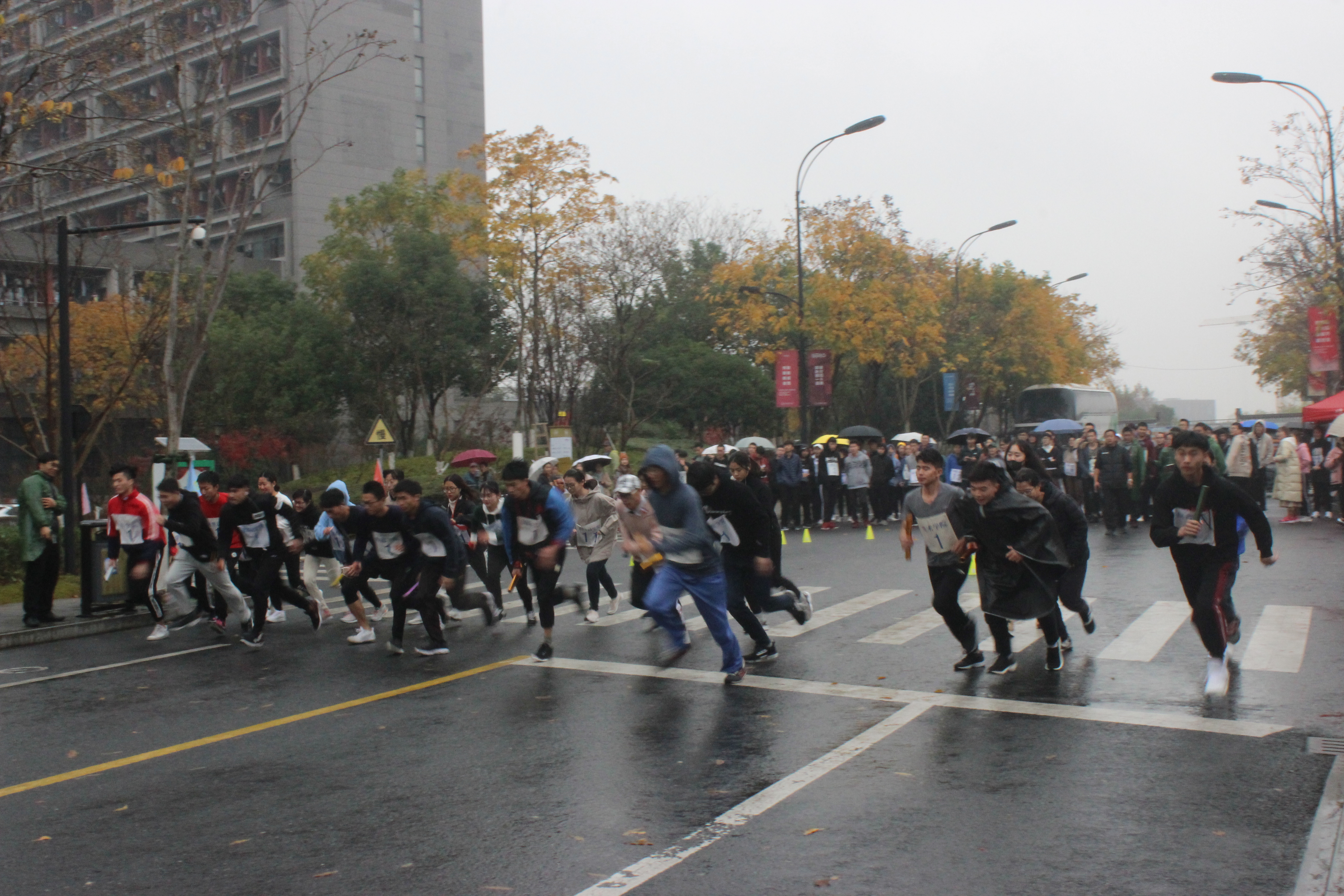 中午12:30,成人小说 的运动员们前往仓前校区。细雨沙沙,冷风习习,但这丝毫不影响运动健儿们的斗志!13:45分,成人小说 的运动员们到了比赛场地。十位男生十位女生穿着单薄的衣服,带着成人小说 的标牌,做赛前最后的准备。1600*20的接力赛,他们丝毫不怯场,下午14:10分,“一二·九”马拉松接力赛正式开始!所有运动员们奋力向前冲去,地板湿漉漉的,但也阻挡不了大家的热情。