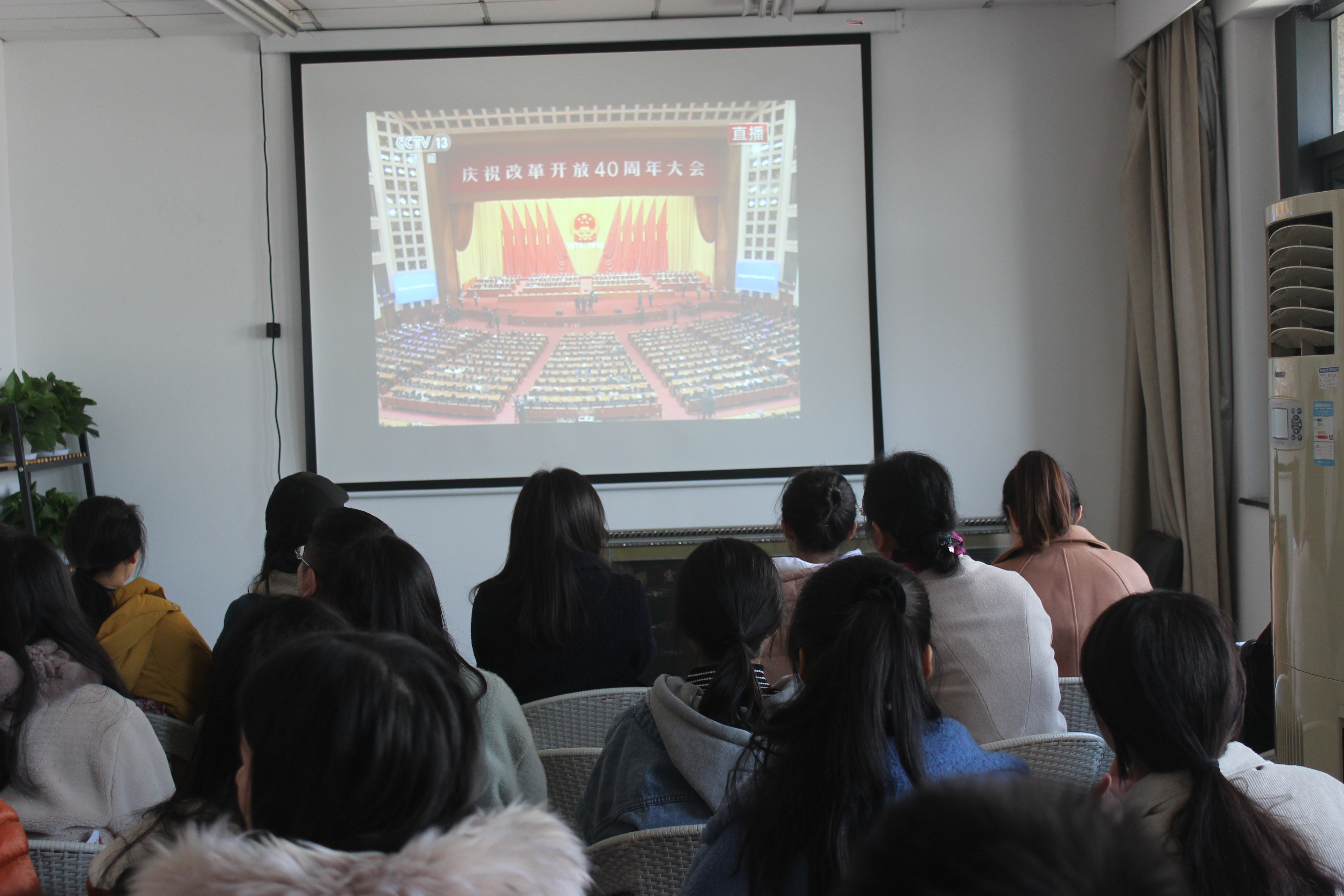 2018年12月18号,成人小说 组织师生于行政楼8楼工会小家观看“庆祝改革开放40周年大会”现场直播。
