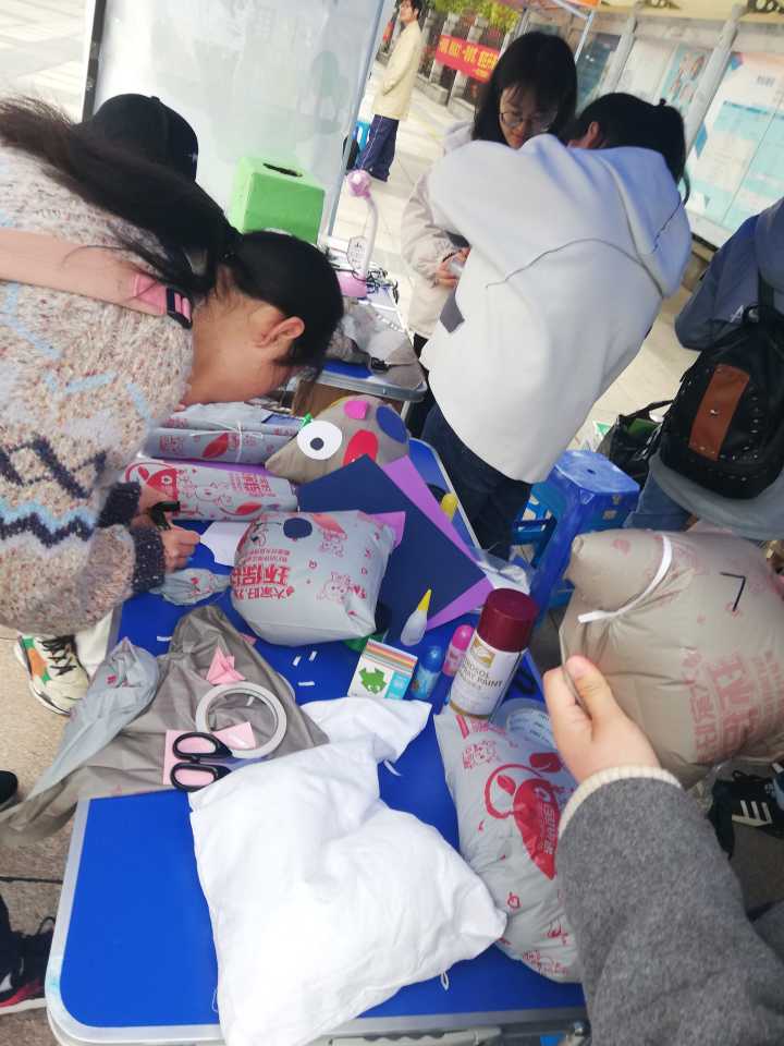 一个个色彩鲜艳的小动物,精美的晴天娃娃、创意独特的手链等奇思妙想的小东西在同学们的手中诞生,他们享受着制作的过程并向周围的同学传递这份快乐,活动的气氛逐渐达到了高潮,感染着在场的每一个人。同学们的欢声笑语融化在温暖的阳光中,一张张笑脸构成二期广场上最美的画面。