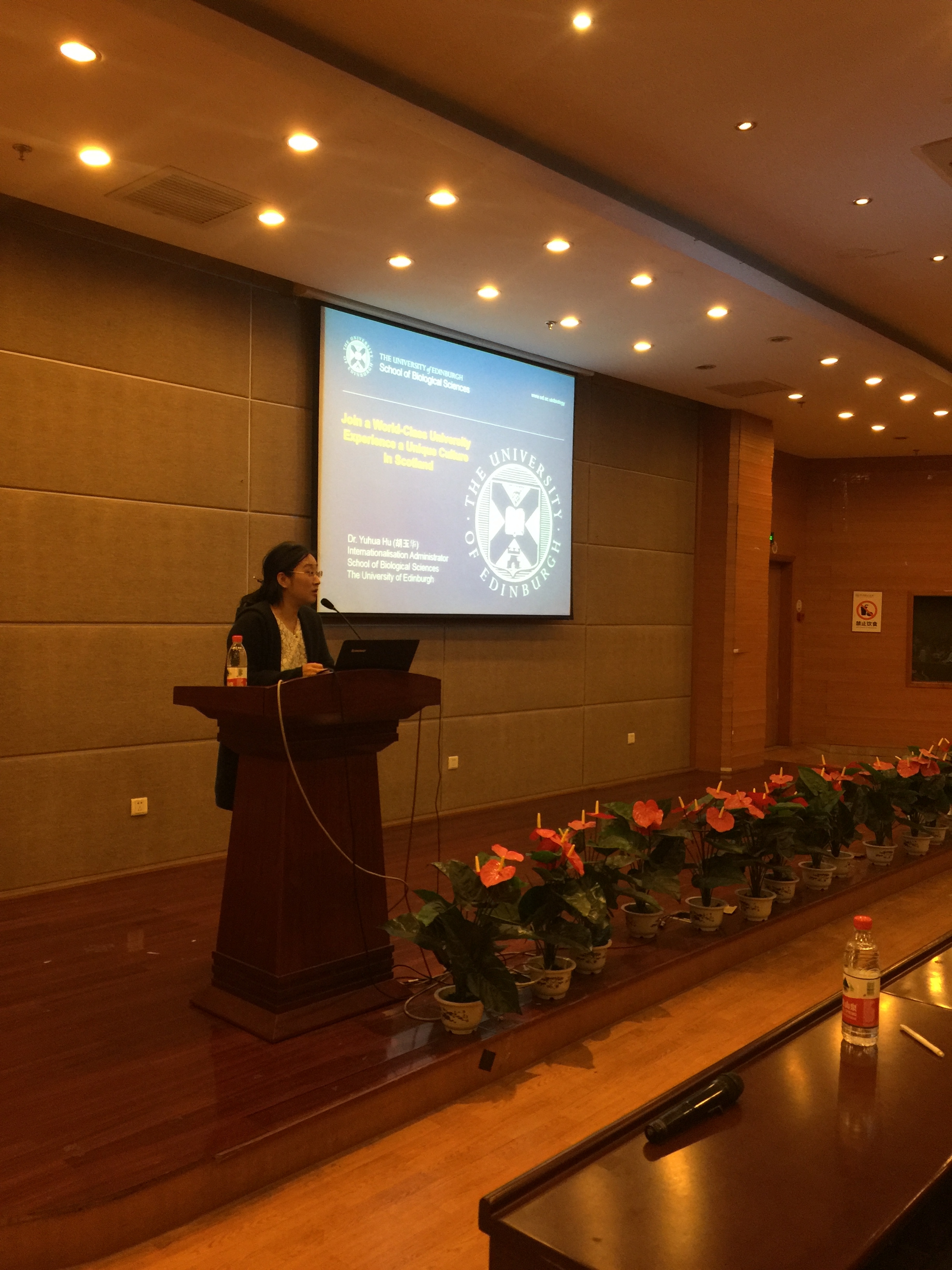 爱丁堡大学位于英国苏格兰首府爱丁堡,是一所世界顶尖著名的公立综合研究型大学。胡老师介绍了苏格兰及爱丁堡的地理位置,建筑,以及拥有的悠久历史。随后她分别对攻读本科生和研究生的要求进行了讲解,告知同学们爱丁堡大学专业选择面广,课程开设理论与实验并重,注重小组合作。并且学校拥有先进的教学手段,给予同学们方便快捷的学习方式。同样,学校注重同学们的生活状况,设有专门的管理人员负责学生的学习生活,能给予同学们最舒适的学习生活环境。之后,胡老师回答了同学们的疑问,帮助同学们更好地更全面的了解爱丁堡大学。