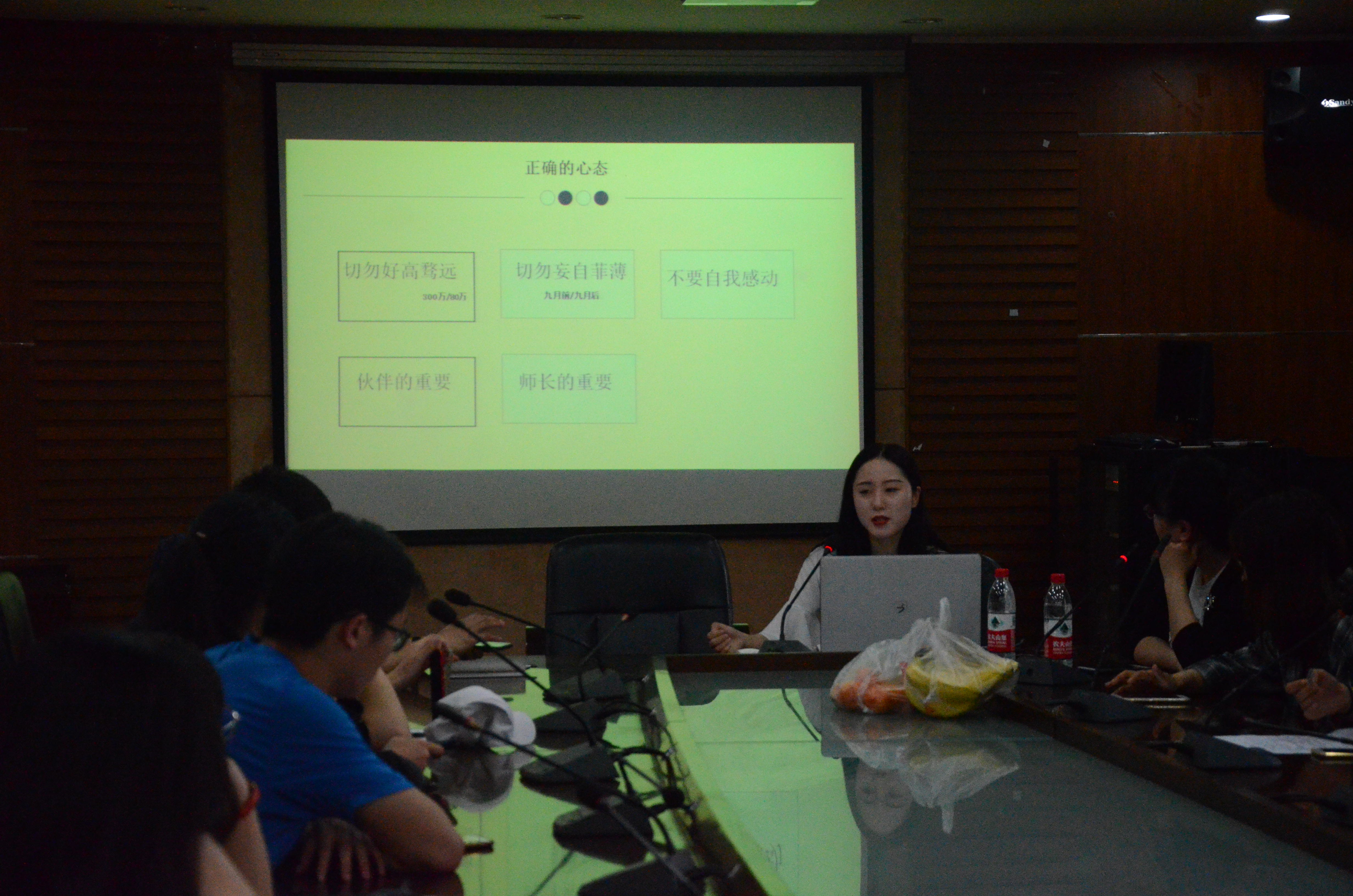 首先是由考取宁波大学的毛晨阳讲述她的考研历程。毛晨阳学姐表示每个人对于考研的想法不尽相同,但这并不重要,下定决心,并努力坚持才是最重要的。此外毛晨阳学姐还强调了一个正确心态的重要性。好的心态和身体素质是考研的前提。用五句话总结就是:切勿好高骛远;切勿妄自菲薄;切勿自我感动;懂得研友的重要;懂得师长的重要。接着毛晨阳与在座的生科学子分享了有关初试、复试的技巧,倾囊相授,告知同学们如何高效率地备考。最后,毛晨阳讲述挑战杯、生科竞赛等科研竞赛的区别和重要性。考研的较量不止在于对知识的掌握程度,还需要具备不畏艰险的精神、良好的心态等。
