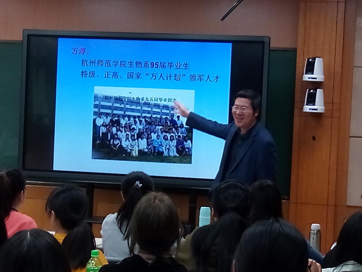 在见习期间,同学们观摩了保叔塔实验学校章吕烨老师的植物科学课和臧艳玲老师的压强科学课;参加了吴玲玲和任霄两位老师的主题班会;聆听了杭十四中特级教师方淳主讲的“关于生物教师入职及专业生成”的讲座。另外,同学们也观摩了成人小说 2016级实习师范生的两节生物公开课。通过以上各种见习环节,同学们观摩到了优秀教师们高超的师范生技能和扎实的生物知识,以及班主任管理能力,同时促动了同学们积极思考自身职业发展和成长规划,提升了师范生教学技能。