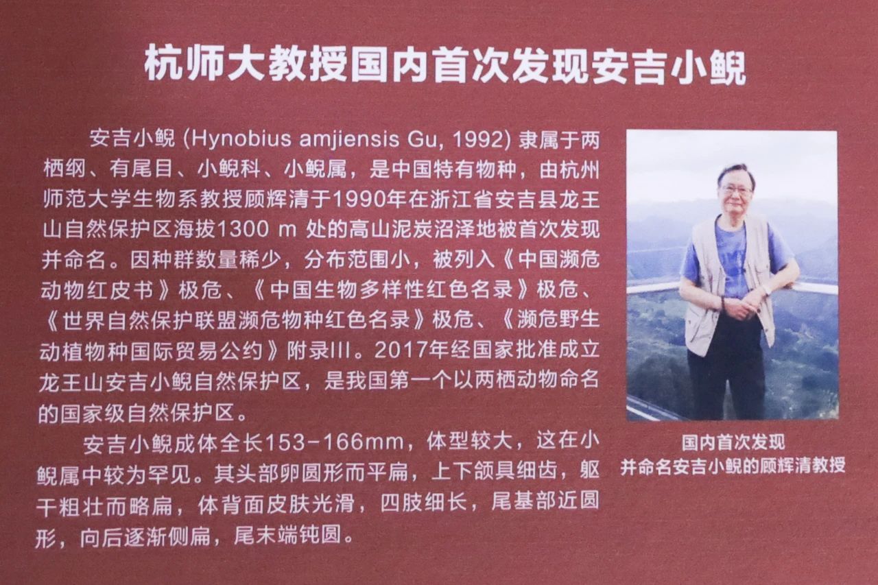 安吉小鲵的发现与现已86岁的顾辉清教授密不可分,因为正是他发现了中国第一尾安吉小鲵。安吉小鲵是浙江安吉县特有的物种,为小鲵科中小鲵属的两栖动物。由于分布狭窄、种群稀少,安吉小鲵被列入全球极度濒危物种,珍稀程度与大熊猫、华南虎、扬子鳄等不相上下。