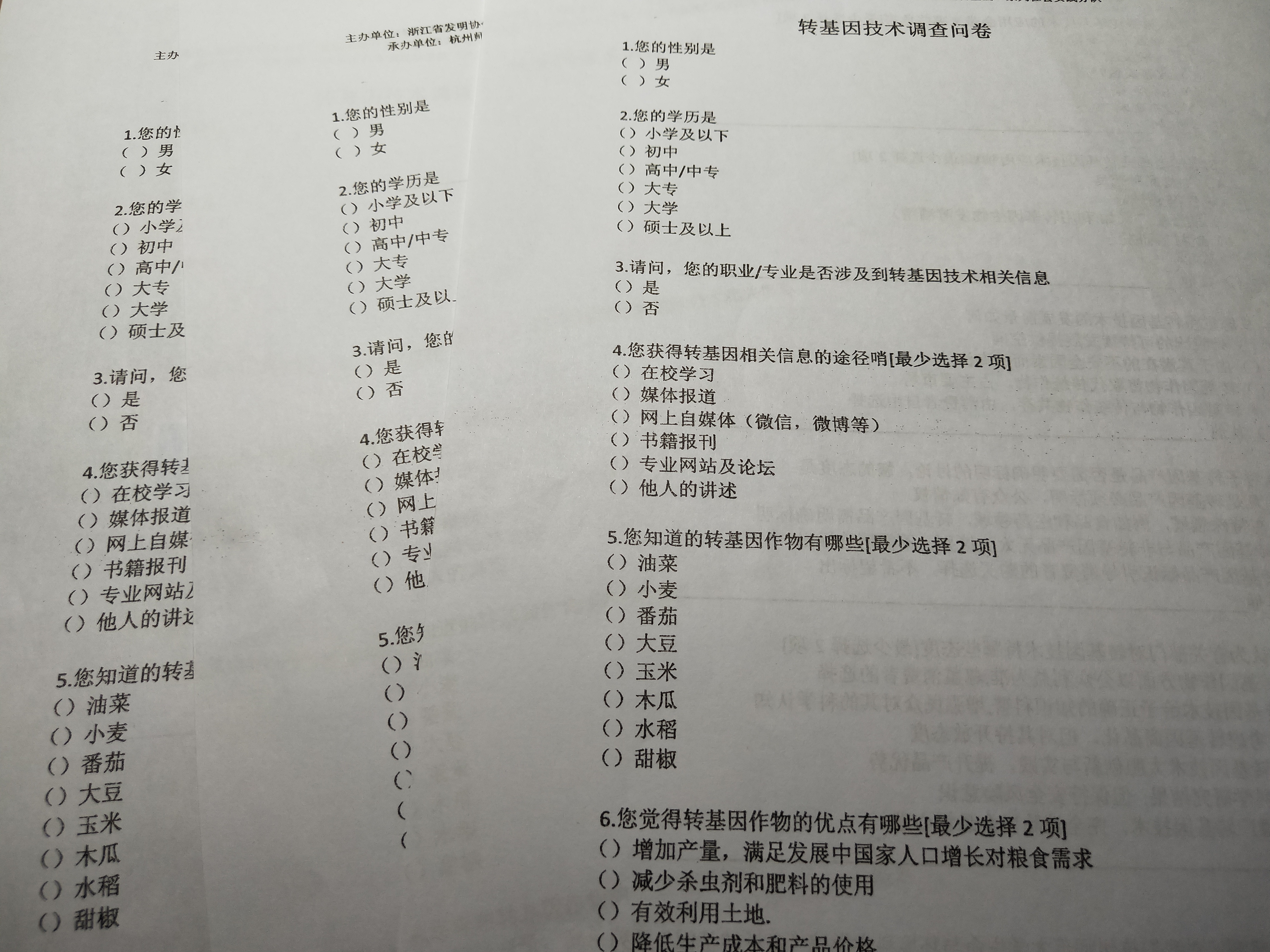 成人小说 “走近转基因”调研小分队 纸质问卷成稿