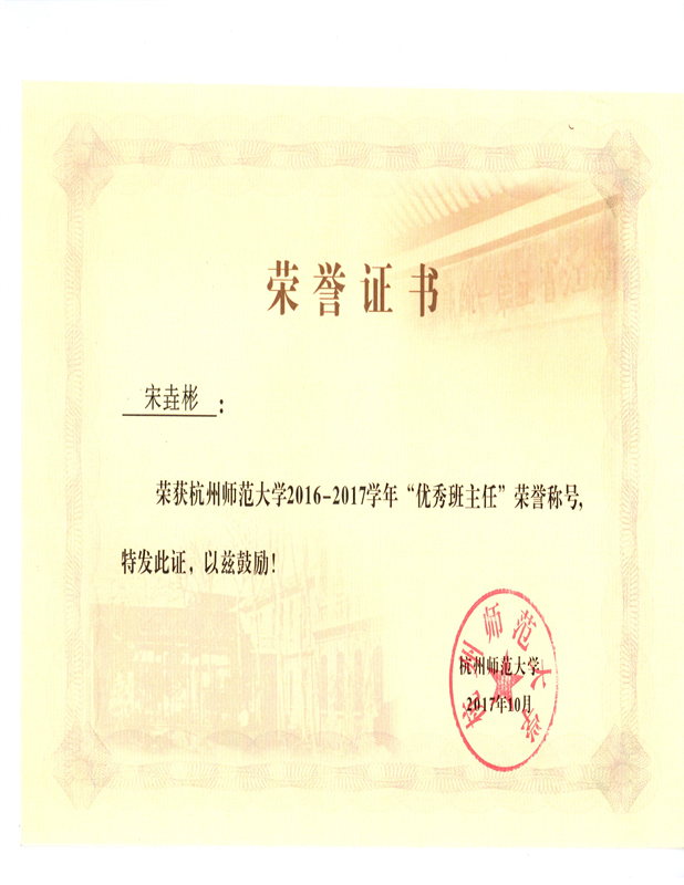 在杭师大这个梦起飞的地方,在教师这个平凡而伟大的岗位上,宋垚彬老师数年如一日地辛勤耕耘,甘为人梯,为的是学生们能够勇敢地奔向自己的梦想,达到respectful、energetic、assiduous、creative、honest的目标,追求卓越的自我。