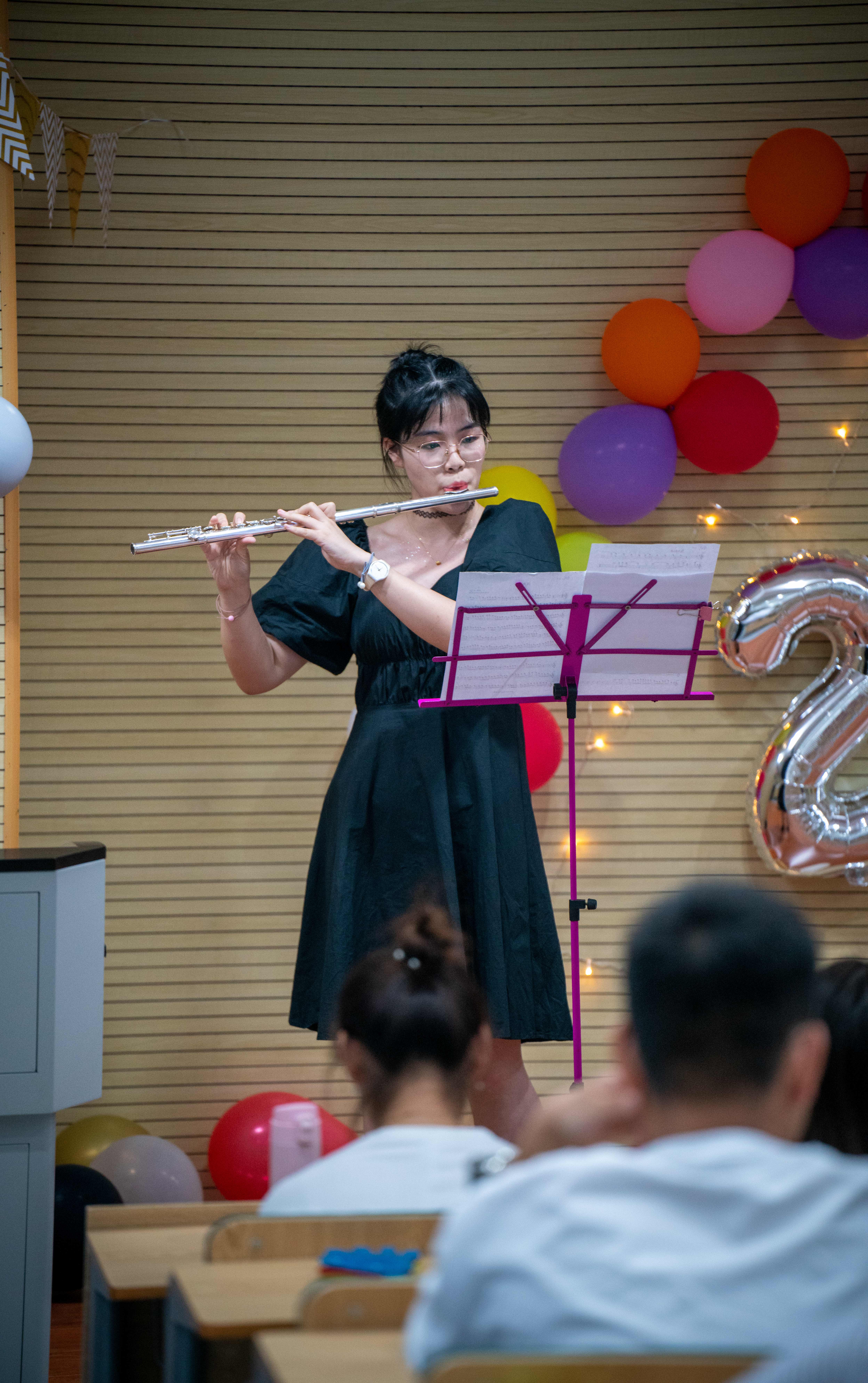 接着由野百合艺术团带来的热情奔放开场舞蹈《Ice Cream》以及主持人声情并茂的开场正式拉开了晚会的帷幕。一首柔情舒缓的《尘埃》将我们悠悠带入晚会的氛围之中,同时新生带来的舞蹈《BBIBBI》让全体师生欣赏到一场视听盛宴;长笛演奏《深海少女》让全场跳进了音符的海洋,笛声在空中继续飘荡,高亢、低回、悠扬、激昂——观众们的心也随之动荡;全场师生挥舞着荧光棒,伴着去年十佳歌手带来的《多远都要在一起》与一袭白衣的新生带来的《烟雨行舟》将晚会气氛推向高潮,大屏幕上布满了场下观众的弹幕,全场洋溢着喜悦与激情,是歌声让人激情澎湃,是歌声令人热血沸腾,是歌声使人如痴如醉。