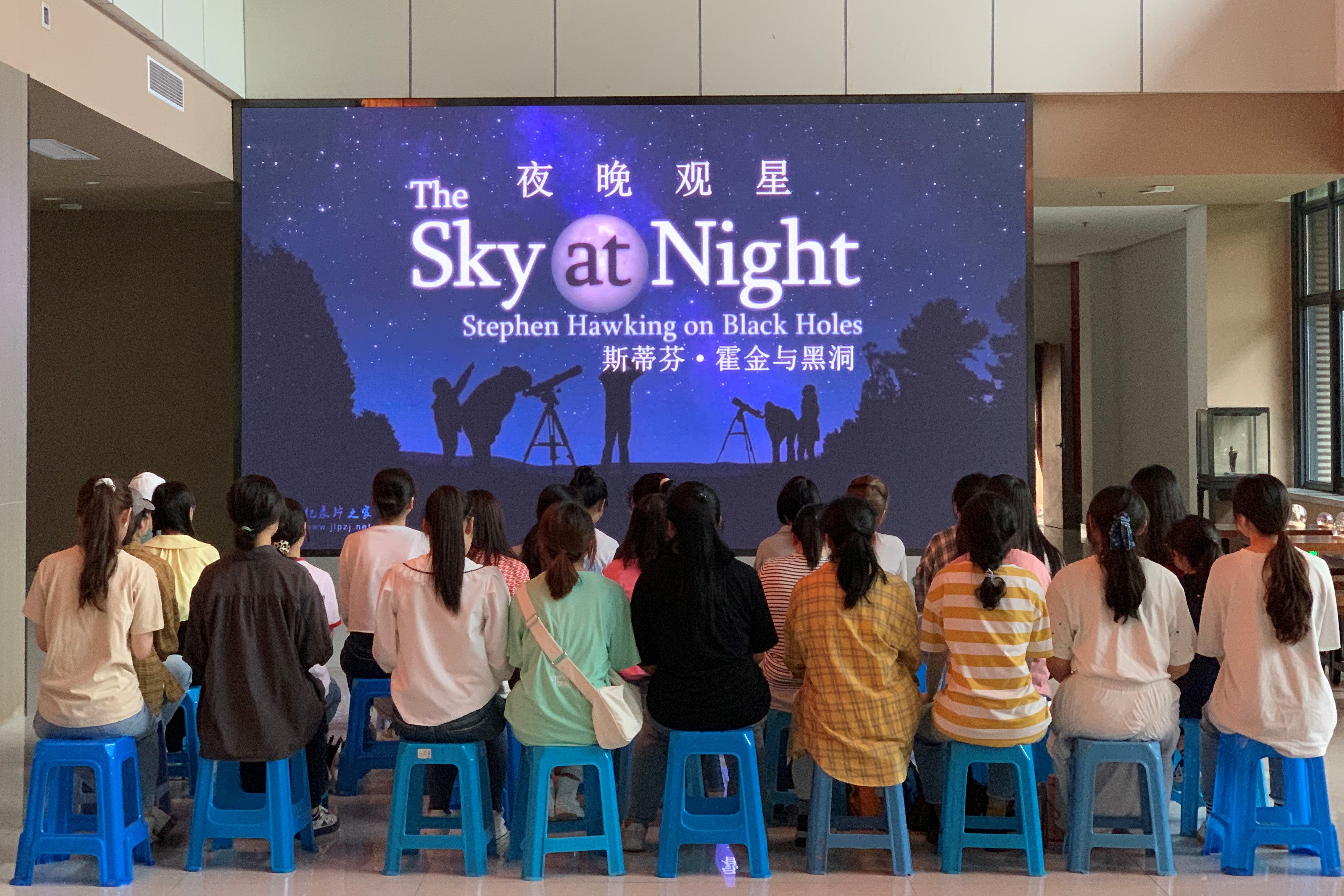 同学们观看《霍金与黑洞》