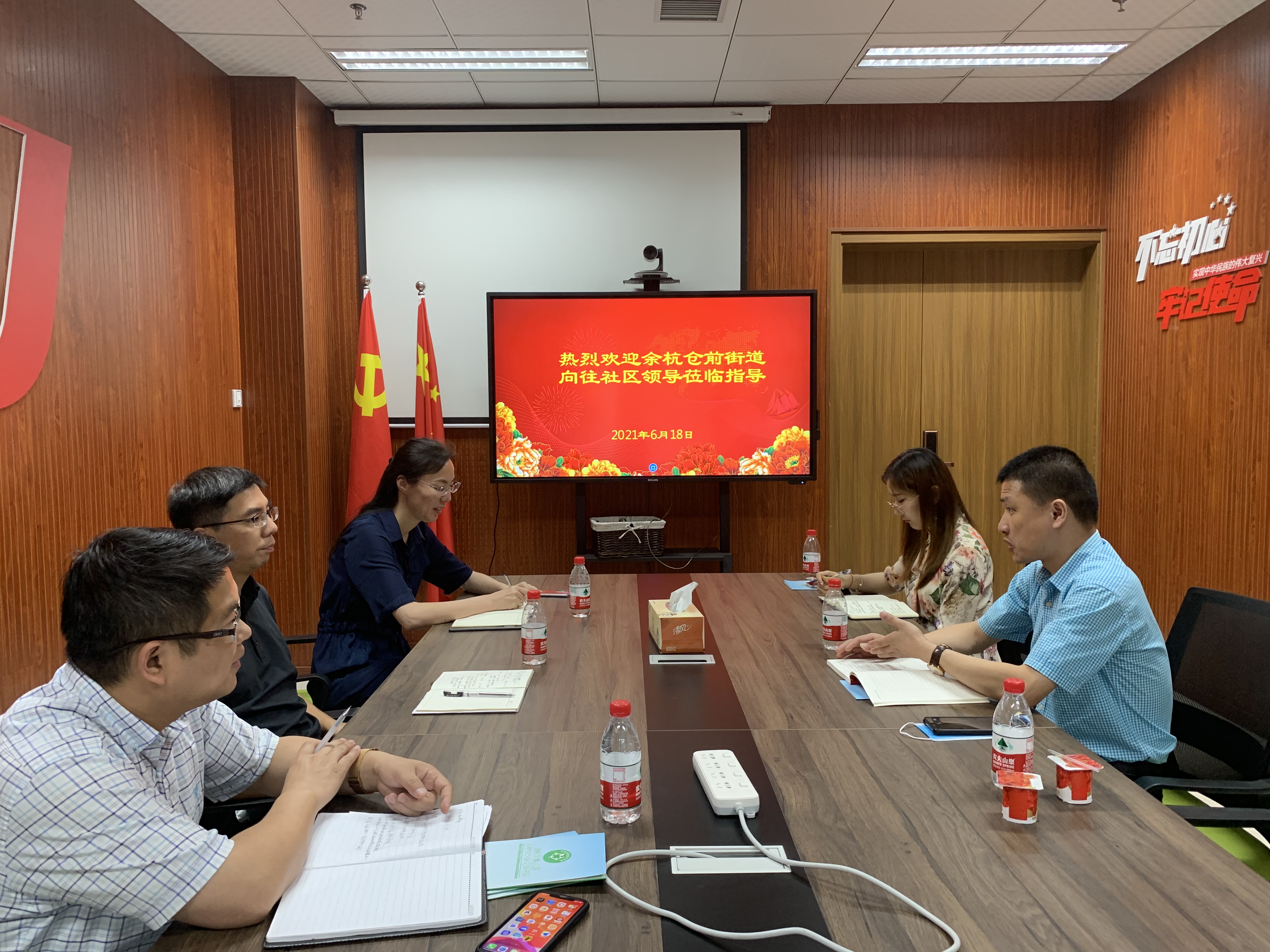 618日,余杭区仓前街道向往社区领导莅临成人小说 学院党委书记张立明、党委副书记余洁和办公室主任、组织员参与交流。