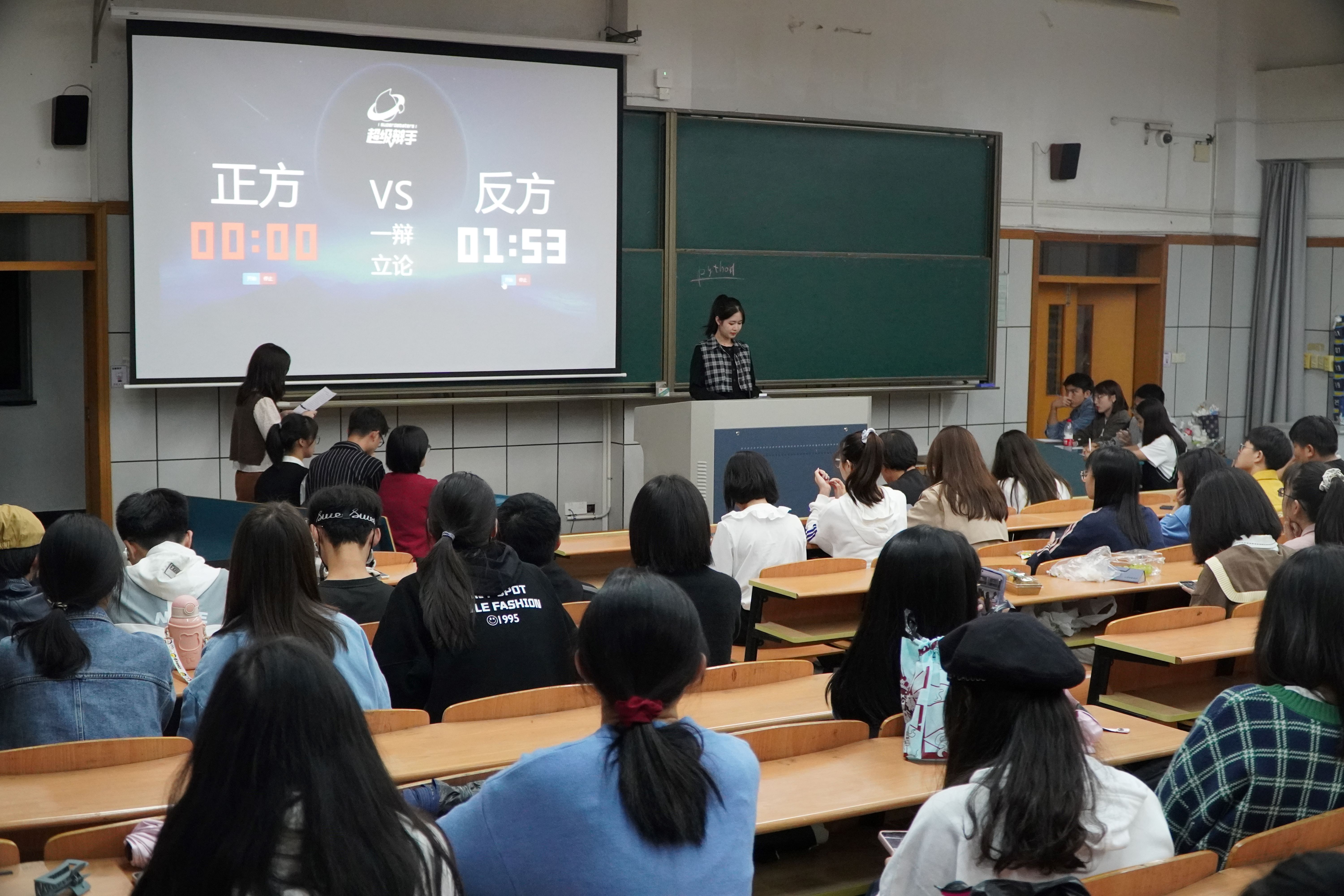 各班辩手都为此次比赛做了充分的准备,从立论到举例,表现出其言语的犀利和思维的敏捷。同时,观众也积极地参与了此次比赛,踊跃地向辩手提出问题,辩手们凭借临场应变能力,从容作答。赛后,评委对比赛做了总结与点评,他们充分肯定了双方辩手出色的表现,但也针对比赛中出现的立论模糊、以偏概全等问题提出了一些改进意见。