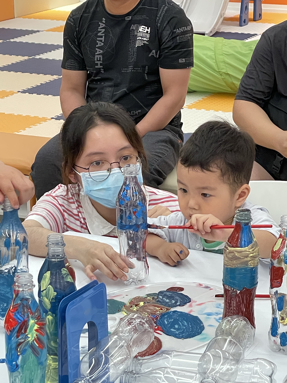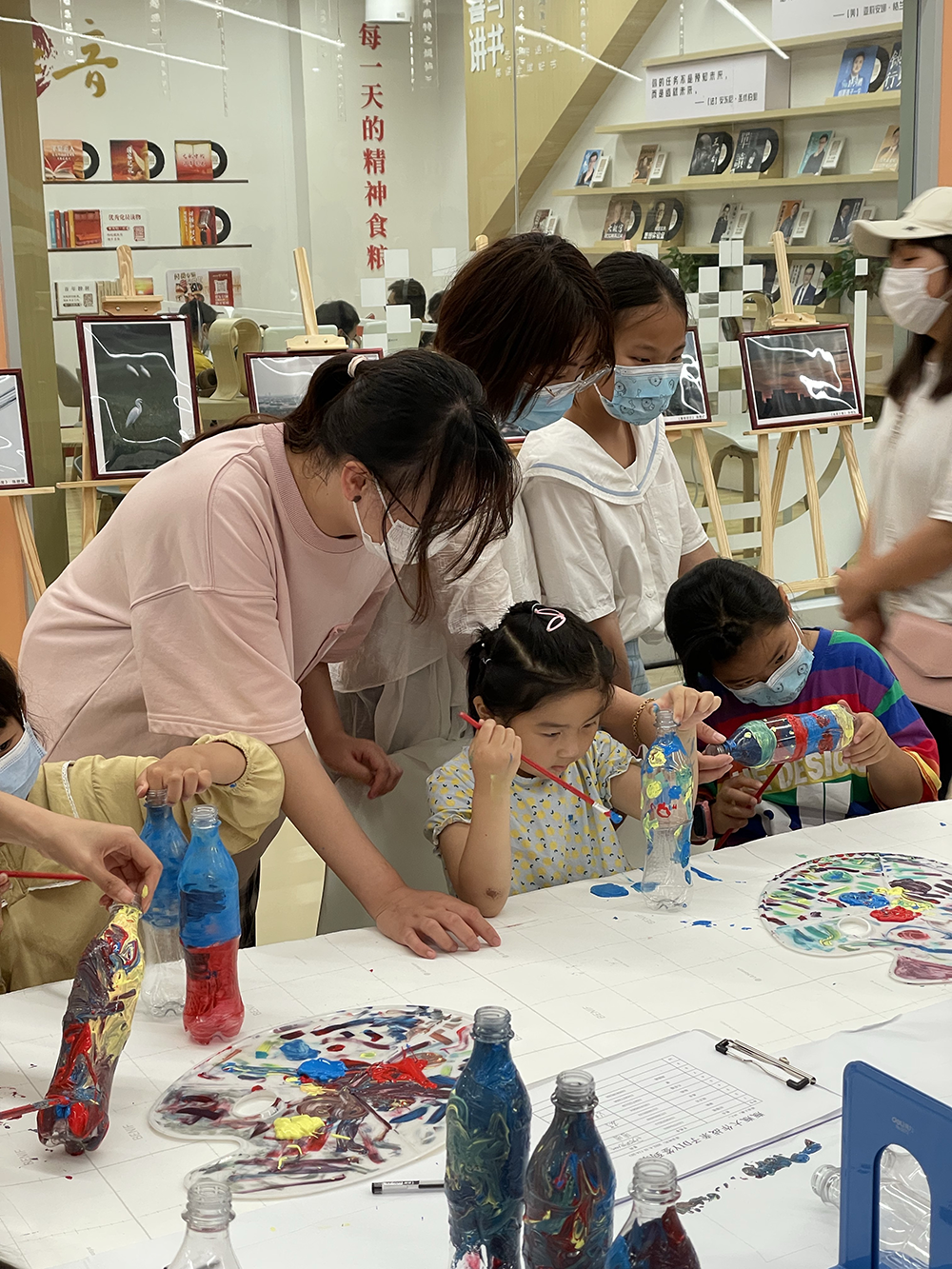 现场“瓶瓶大变身”可乐瓶创意DIY制作环节,成人小说 派出志愿者团队,化身为“小老师”带领现场小朋友们共同对废弃可乐瓶进行创意加工,打造各式各样的“艺术品”,在实践中传播环保艺术理念。