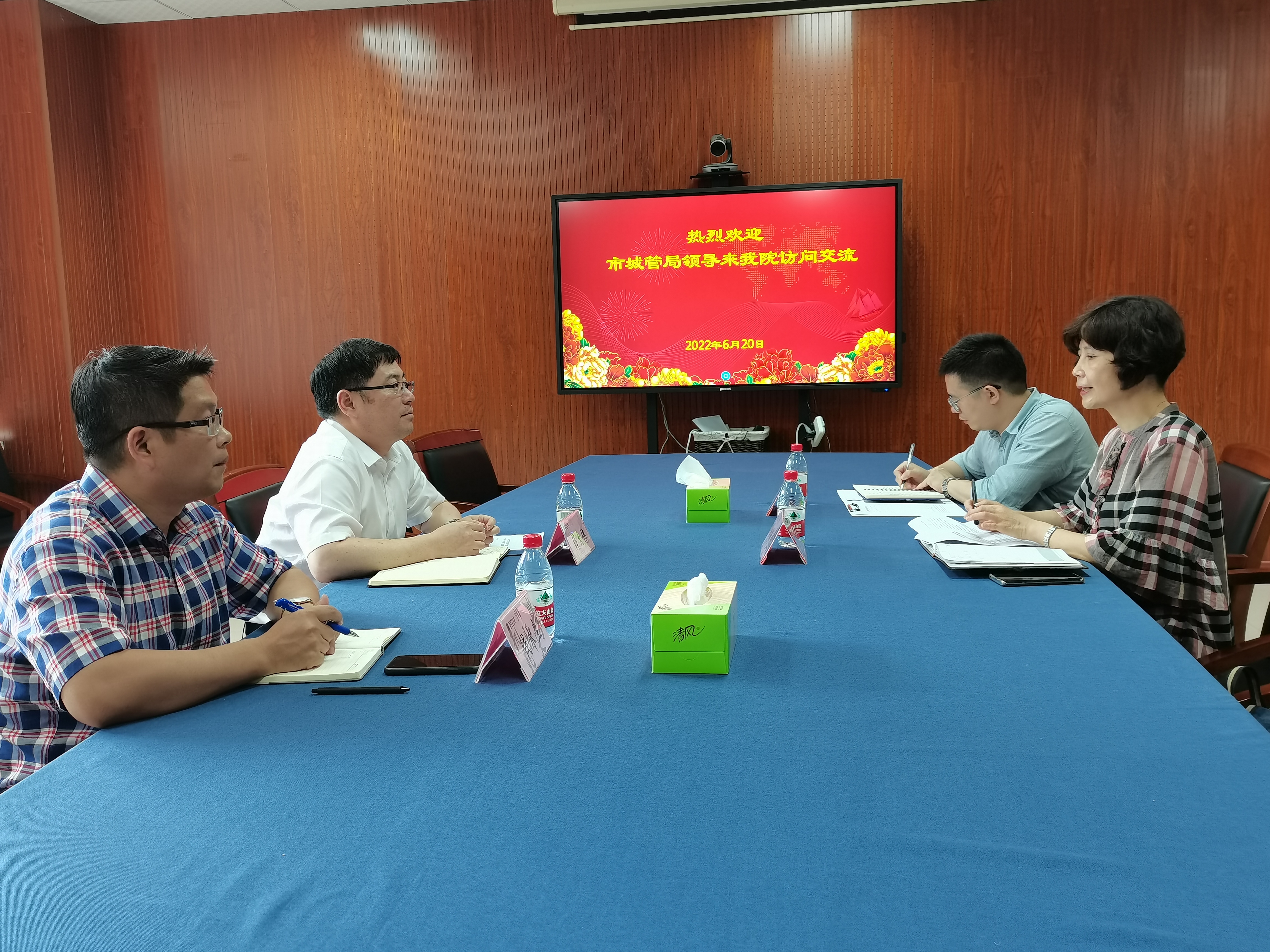 市城管局沈小红、赵洋与成人小说 市政协委员薛大伟教授进行提案反馈交流