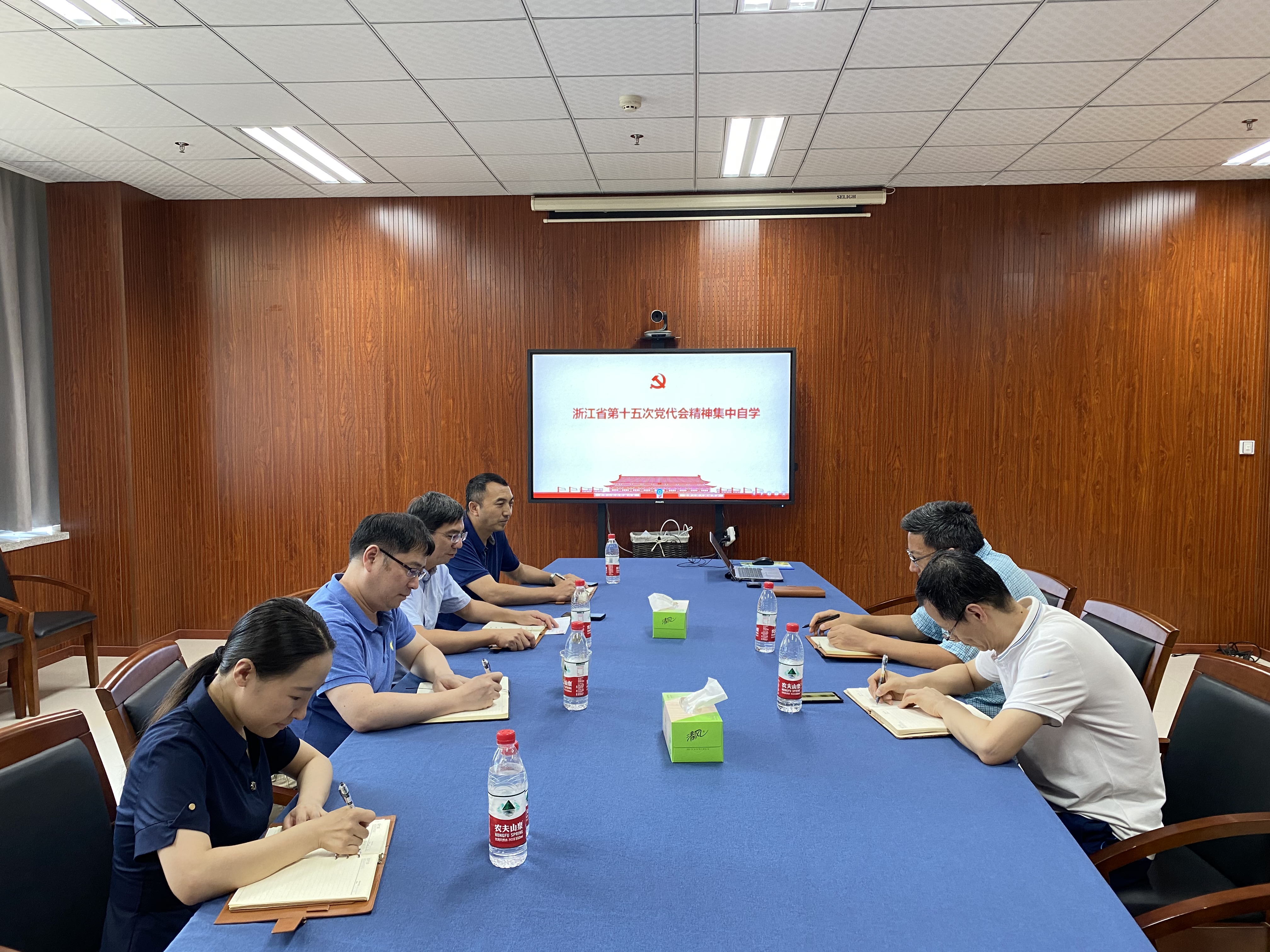 7月12日上午,成人小说 党委理论学习中心组成员在慎园15-313集体回顾观看了浙江省第十五次党代会开幕会,并对浙江省第十五次党代会精神集体自学,对省党代会报告内容、6问6答内涵、报告中的“实”与“情”,创新等精髓进行深入学习。