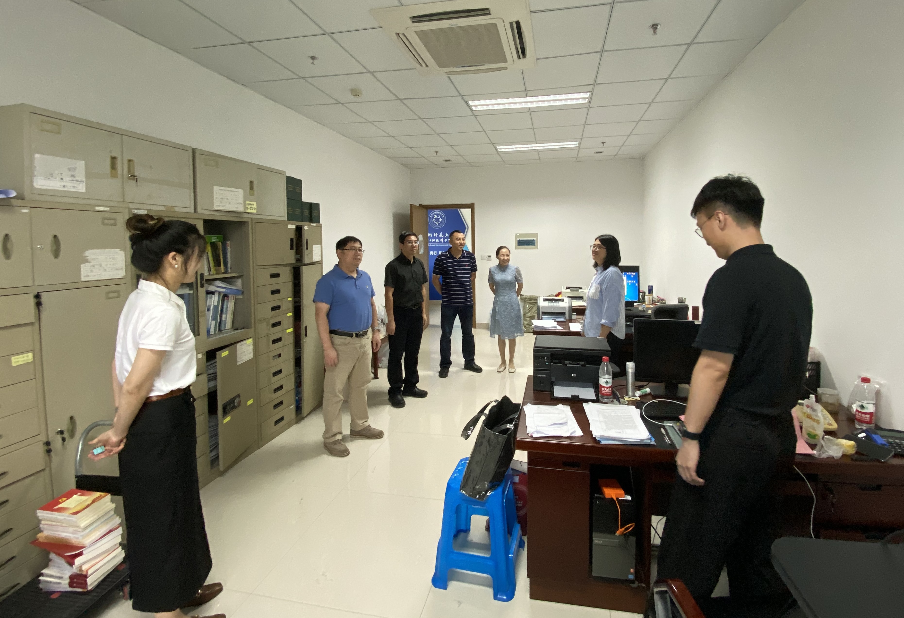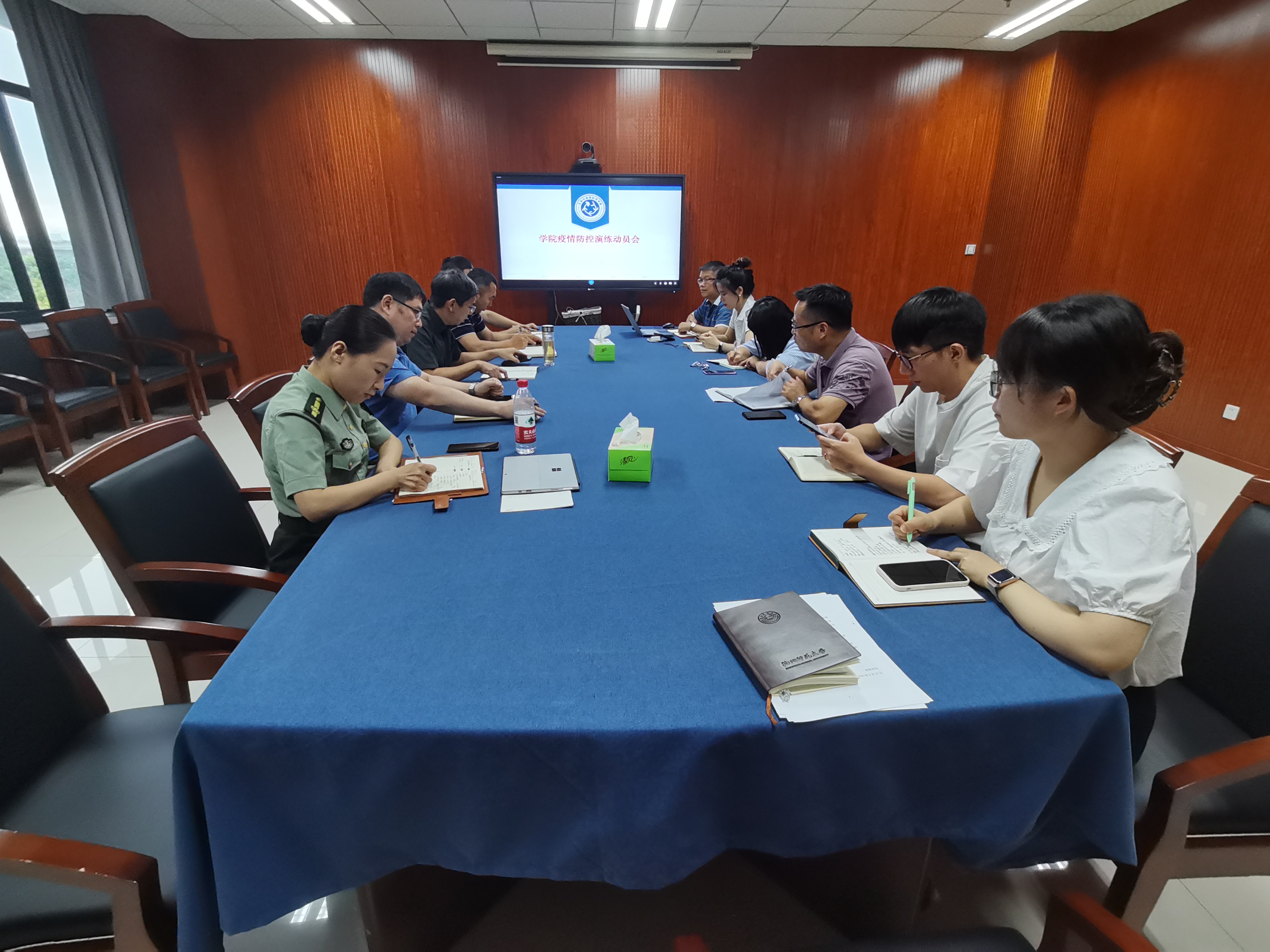 会后,学院领导进行了防疫物资的检查,走访了学院相关科室,询问了开学准备工作;最后按照部署进行疫情防控应急演练。
