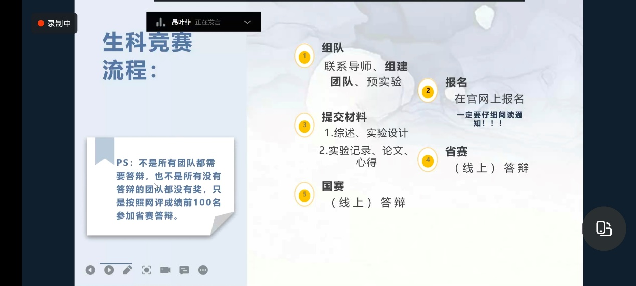 陈奕澄学姐从自身科研经历出发,细致讲解了本创和国创项目的立项、结题的内容,并对自己遇到的几个问题做了经验分享。最后,陈奕澄学姐贴心附上自己的微信二维码,方便大家的联系与沟通。